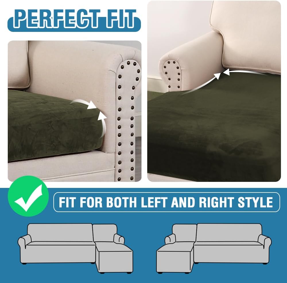 H.VERSAILTEX Velvet Stretch Sectional Couch Covers 3 Pieces Sofa Seat Cushion Covers L Shape Separate Couch Cover for Both Left/Right Sectional Couch (Large Sofa 2 Seater + 1 Chaise, Olive)