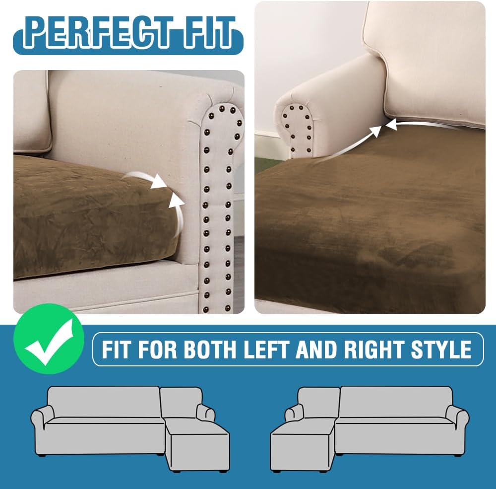 H.VERSAILTEX Velvet Stretch Sectional Couch Covers 4 Pieces Sofa Seat Cushion Covers L Shape Separate Couch Cover for Both Left/Right Sectional Couch (Large Sofa 3 Seater + 1 Chaise, Bronze Brown)