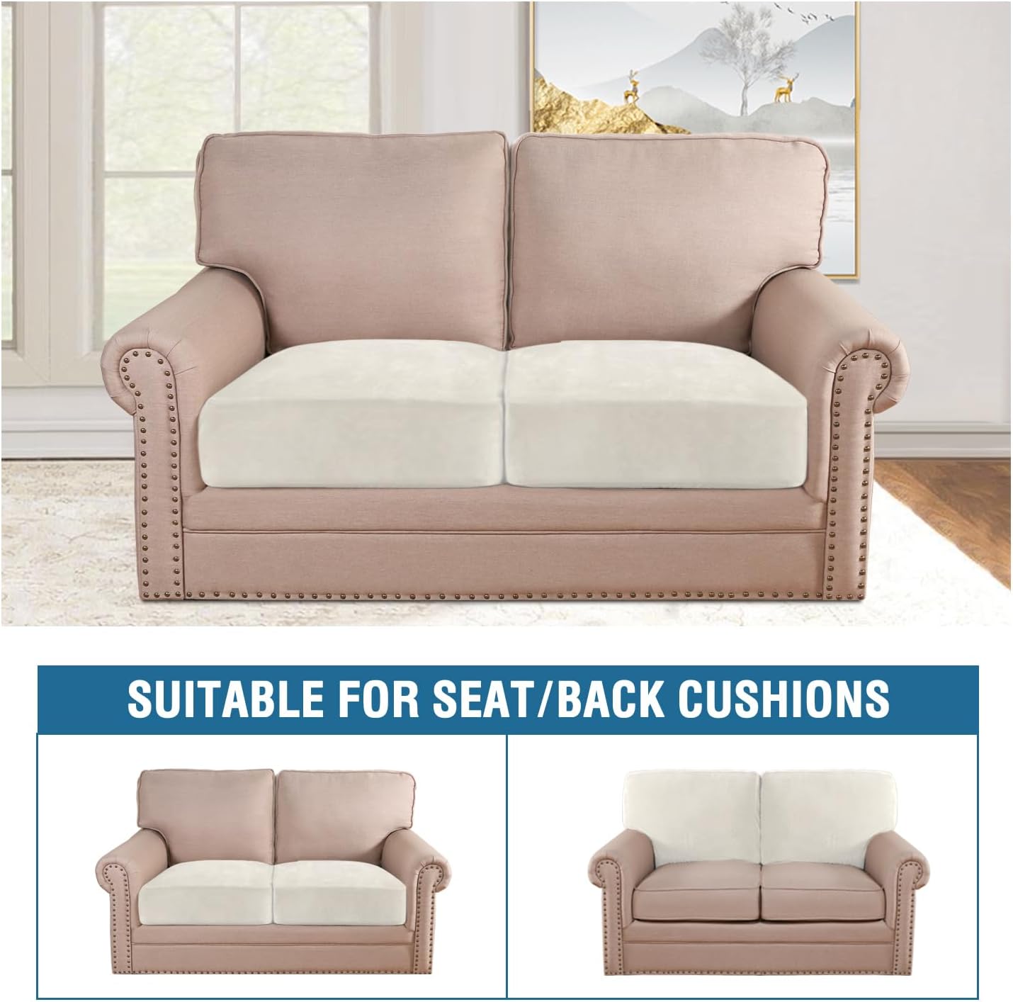 H.VERSAILTEX Velvet Stretch Couch Cushion Cover Plush Cushion Slipcover for Chair Loveseat Sofa Cushion Furniture Protector Seat Cushion Sofa Cover (2 Piece Medium Sofa Cushion Covers, Porcelain)