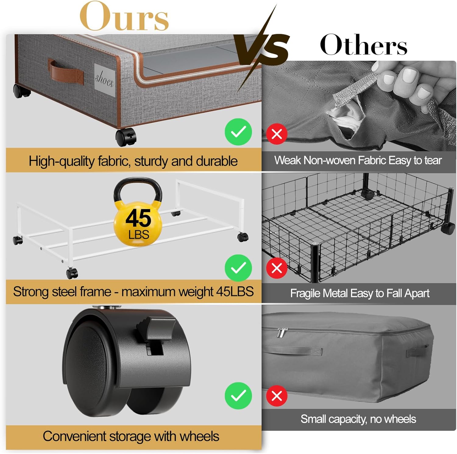 - 【Multipurpose】This underbed storage box easily holds out-of-season clothes, shoes, books, toys, decorations, and more. Its compact size tucks neatly under sofas, in closets, or beside shoe cabinets. Plus, the under bed storage drawers fold flat when not in use, saving space and keeping your home organized