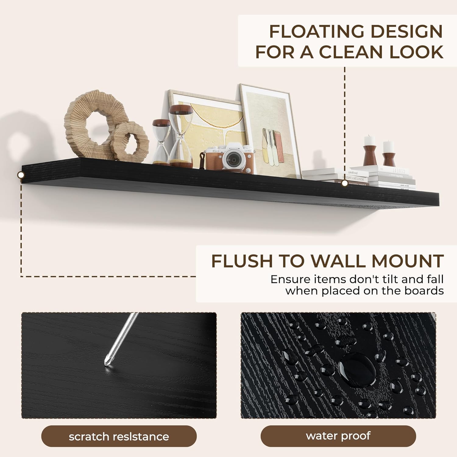 RICHFOCUS 72Inch Floating Shelves for Wall 1 Pack Shelves for Bedroom|Kitchen|Bathroom Wall Mounted Rustic Wood Floating Shelf with Invisible Brackets for Books|Storage|Decor, Black