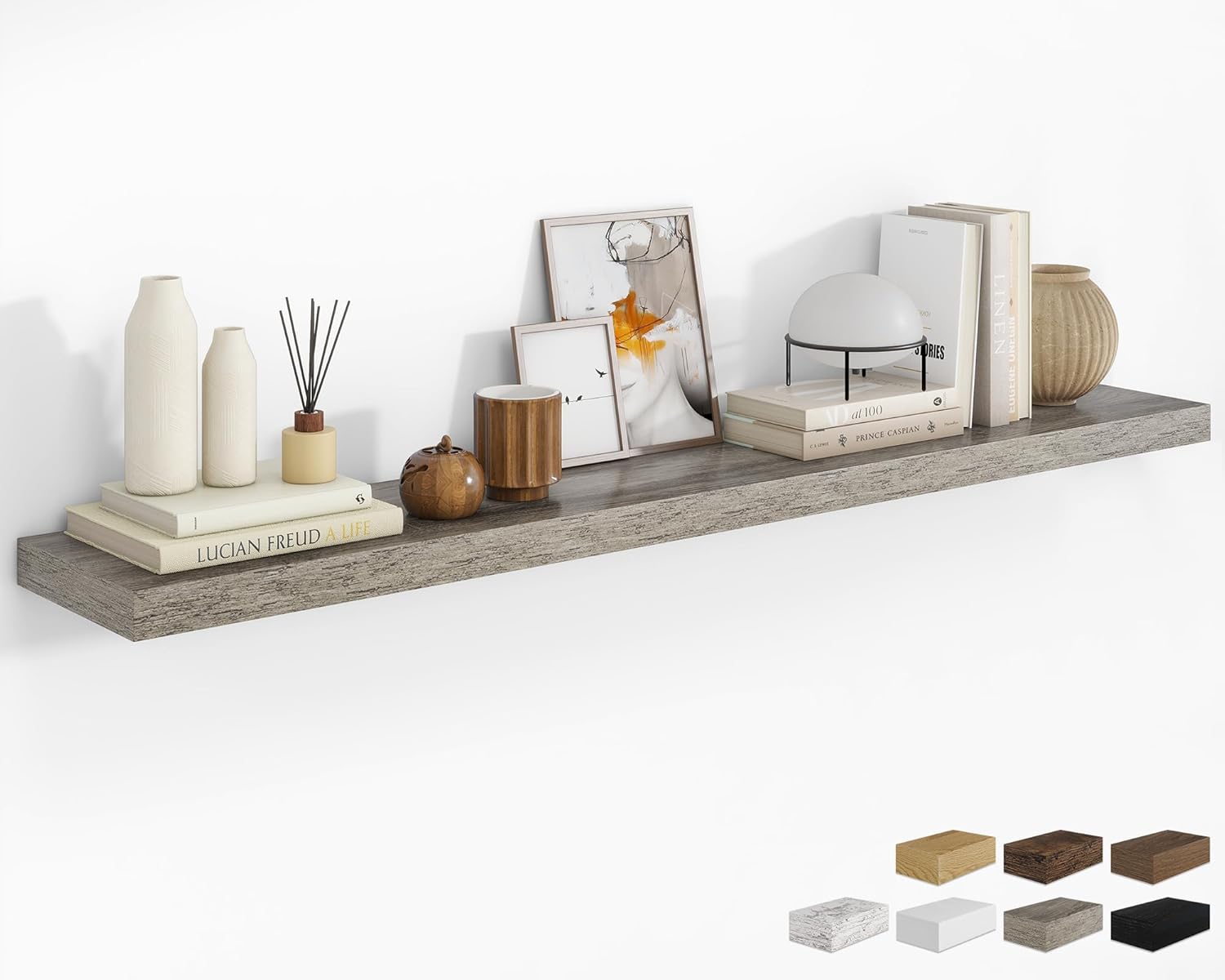 - 72 Inch Floating Shelves for Wall (Set of 1): Each wall shelves are 8 inches in depth and 1.5 inches in thickness. Our wall shelf can be used in combination, staggered high or low on the wall, or mounted side-by-side to provide extra storage space for organizing small items and clutter in multiple areas such as kitchens, bathrooms, and bedrooms, creating a clean and smooth look. Multiple colors available