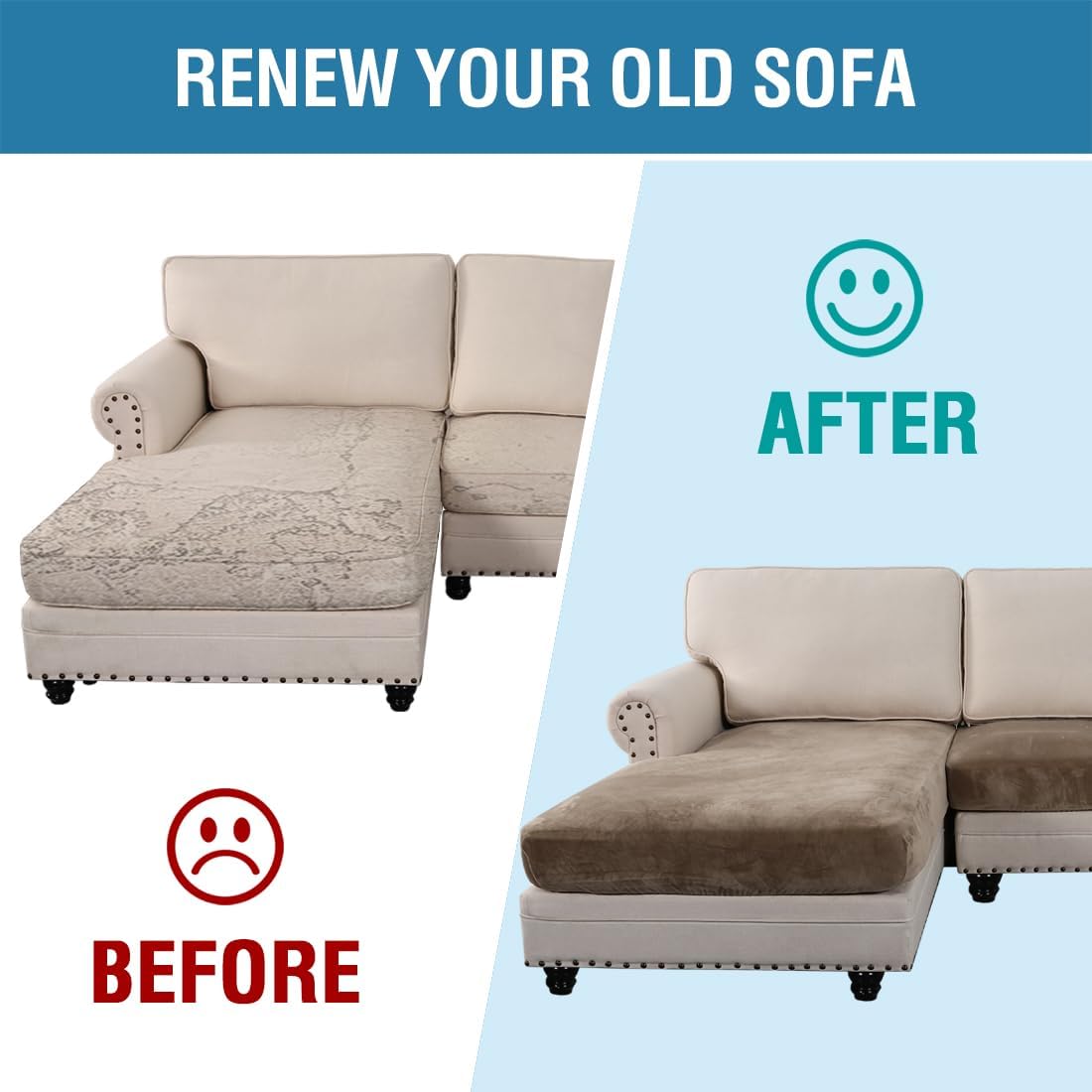 - INCREDIBLY COMFORTABLE VELVET: Products passed GLOBAL RECYCLED STANDARD certificate.This innovated stretch sofa slipcovers are constructed with 3 PIECES,including 1 Chaise cover and 2 individual cushion covers. Crafted from luxurious velvet plush fabric, feature thick, soft, smooth, anti-wrinkle, no fading, durable as well as highly stretch. Protect your cushion furniture from daily wears and tears, stains, kids, scratches from pet claws, dogs or accidental spills