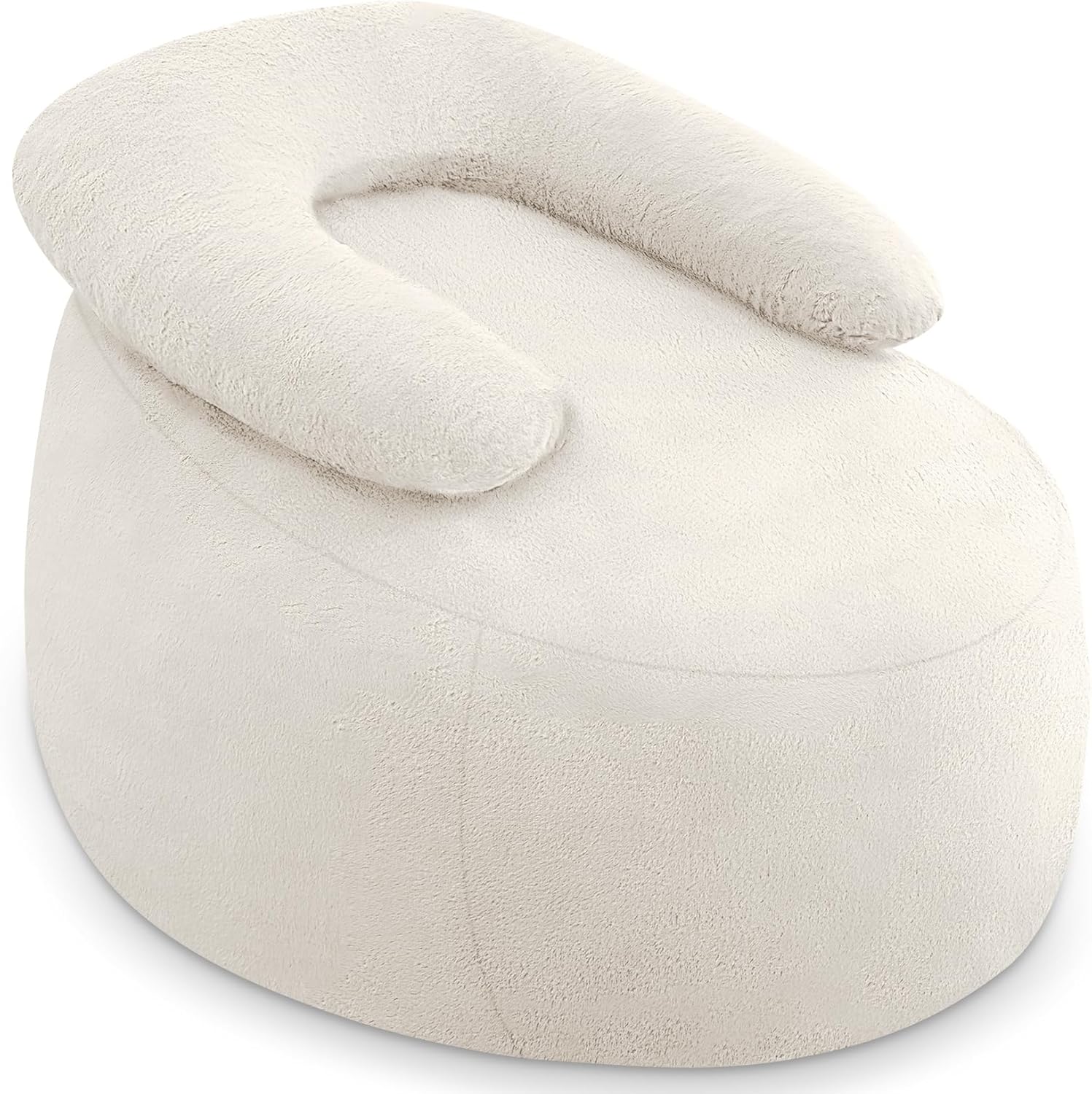 HABUTWAY Bean Bag Chair with U-Shaped Pillow for Adult and Kids Big BeanBag Chair with Filling Ultra Soft Faux Fur Couch Chair with Washable Cover for Living Room Bedroom Office, Beige & Beige