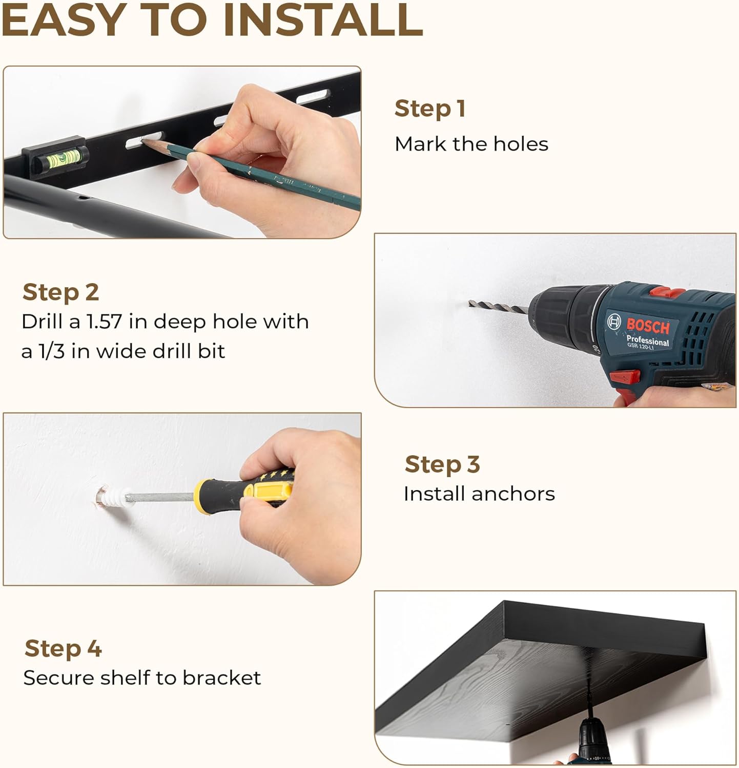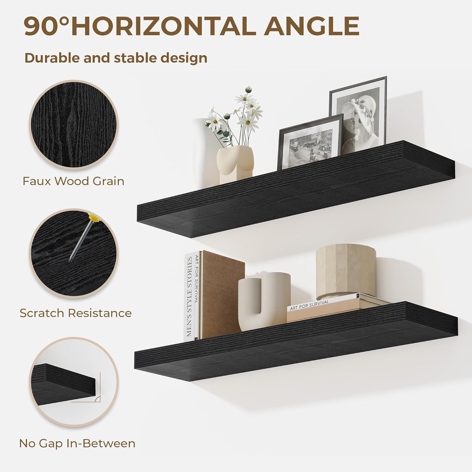 - Sturdy & Secure design: These 48-inch floating shelves feature a durable, concealed mounting bracket that offers reliable support for your belongings. Engineered for hassle-free and stable installation, each shelf includes all the required hardware to ensure a strong, wobble-free hold—perfect for showcasing your favorite decor, photos, or everyday items with confidence and style.