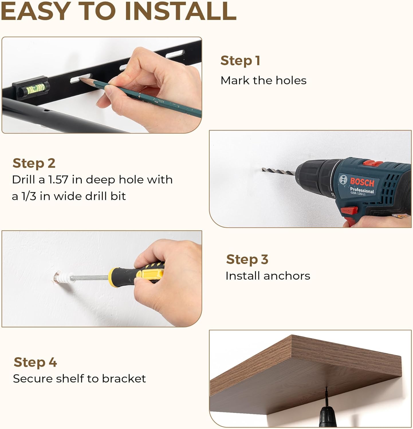 - Easy to Install: Our long wall shelf can be easily installed in minutes with the installation manual.Convenient to wipe and easy to maintain.This deep floating shelves for wall is also an ideal gift for family and friends.