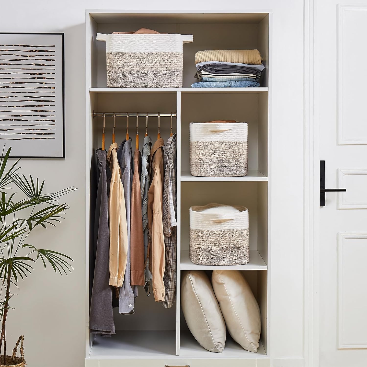 OIAHOMY Woven Storage Basket, Cotton Rope Baskets for Toys,Towel, Clothes, Used to Bathroom,Living Room,Nursery,Bedroom, 16"x12"x10"- Pack of 3, Gradient Yellow