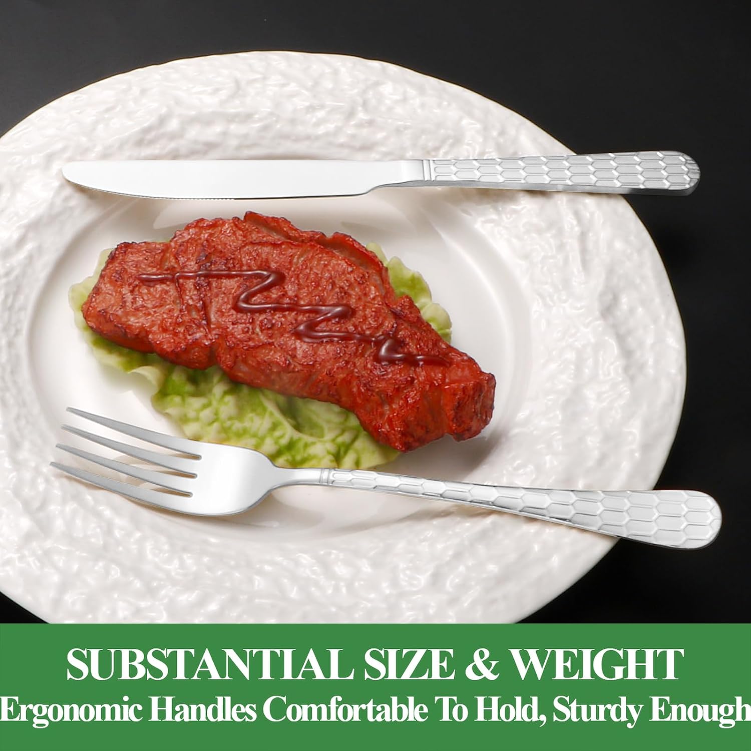 20 Pcs Silverware Set for 4 with Water Cube Handle design, Food Grade Stainless Steel Flatware Set, Eating Utensils Sets Include Fork/Knife/Spoon, Reusable Cutlery Set, Dishwasher Safe