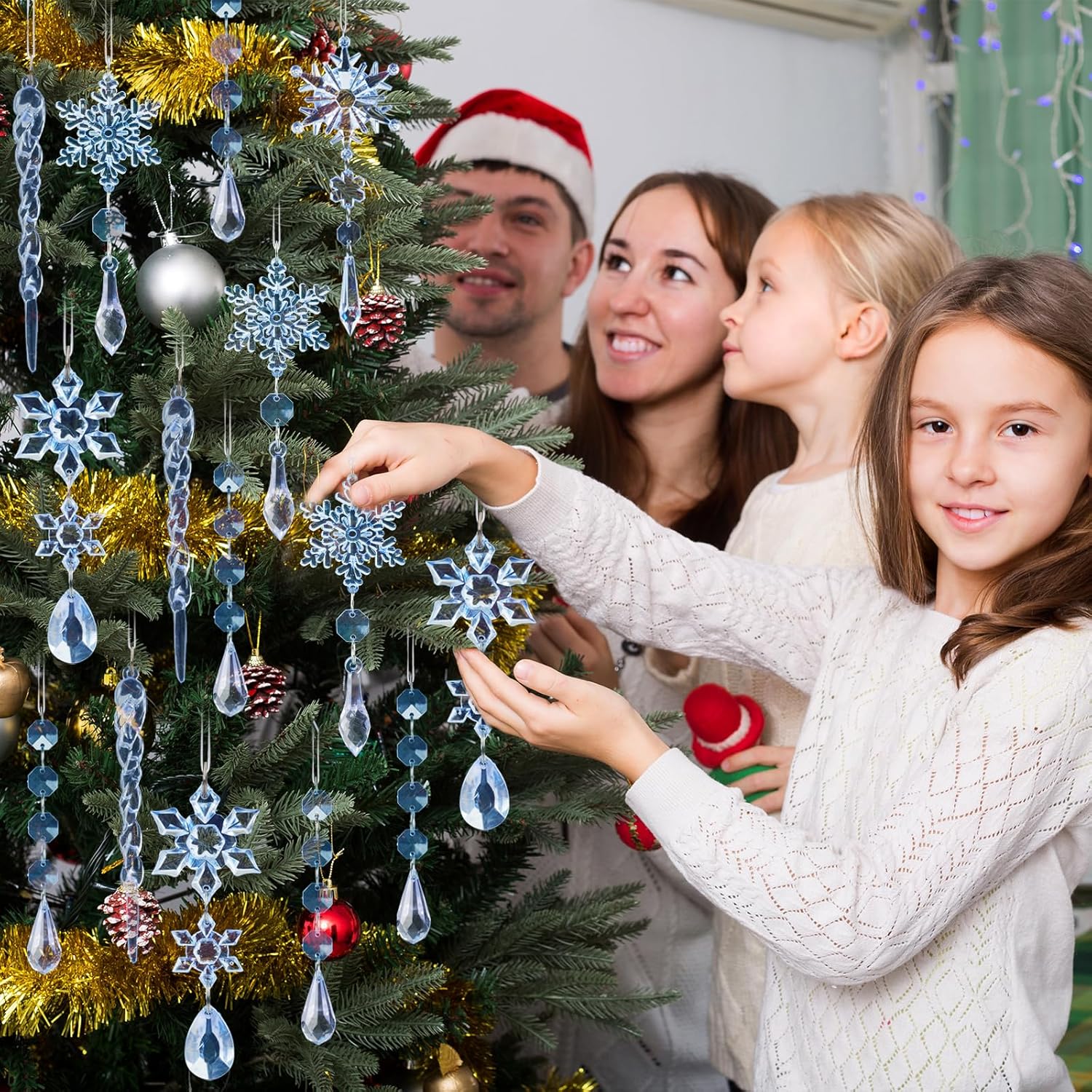 - Premium Material: These Christmas hanging crystal snowflake ornaments are well made of tested high quality acrylic material, safe for kids or pets, sturdy and shatterproof, lightweight, clear and smooth, durable for indoor or outdoor uses, save and reuse them for next Christmas