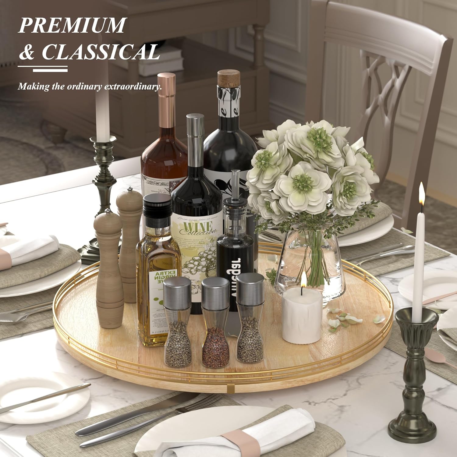 - [Extra-Large 21-Inch Design] Designed for spacious American homes, this oversized Lazy Susan provides ample surface area for family meals, parties, or organizing kitchen essentials.