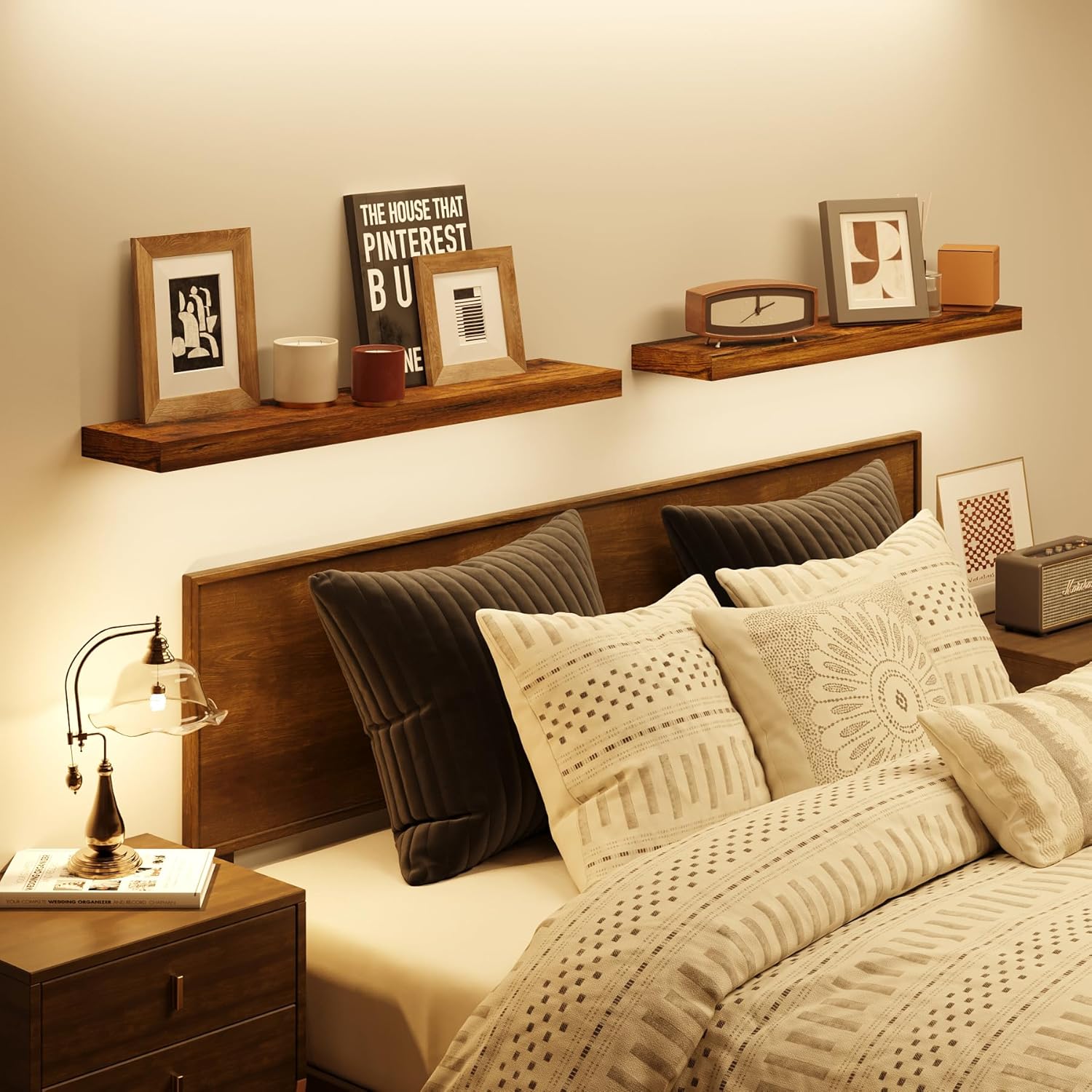BAMEOS Floating Shelf,Wall Shelf,Decor Wall Mounted Shelves,Hanging Shelf Set L24xW6 for Bathroom Kitchen Living,Kitchen,Room Bedroom Storage, Rustic Brown
