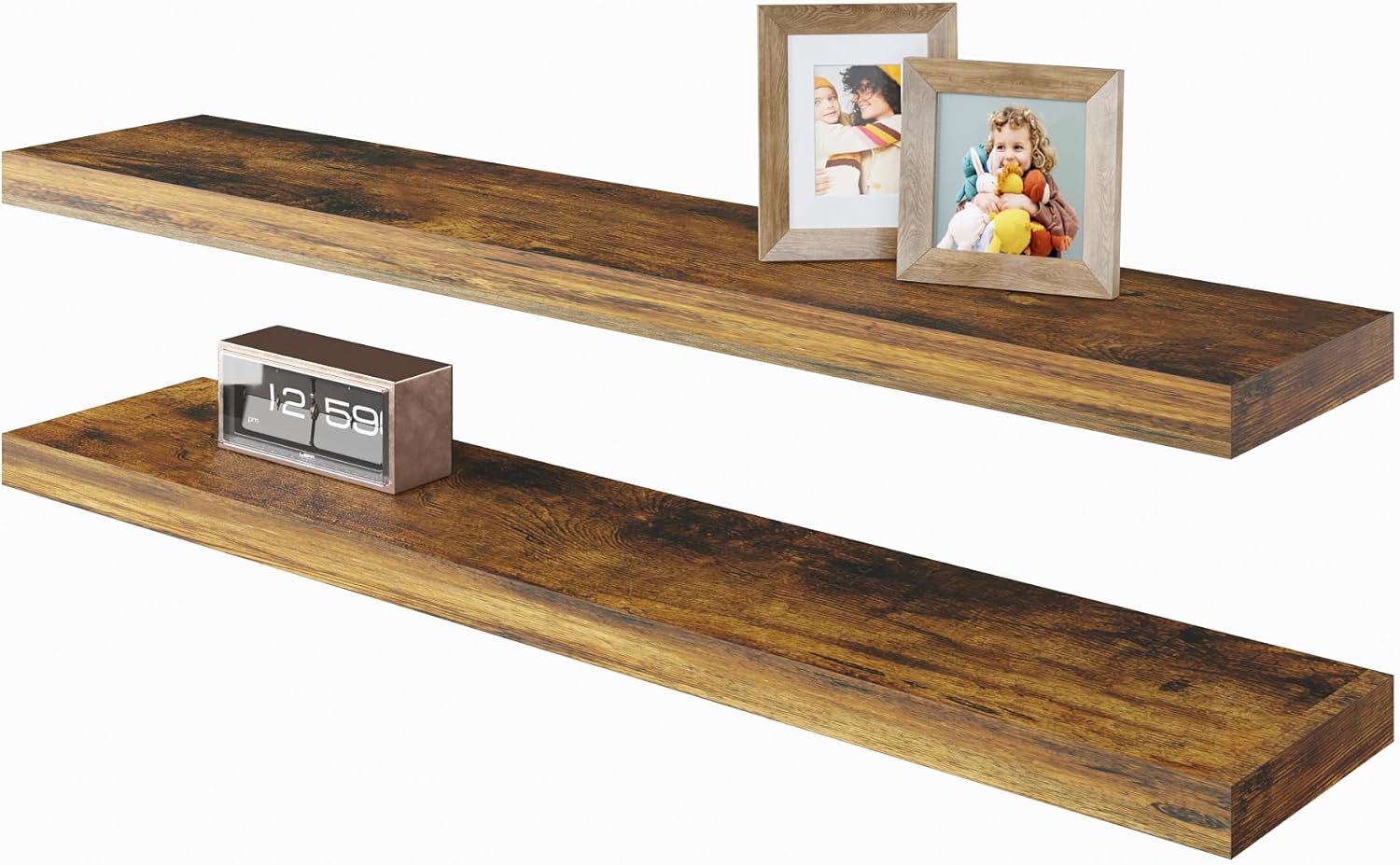 - GREAT FOR ANY ROOM: Our wood floating shelves are made of MDF with a frosted surface texture for a mordern feel that blends perfectly into a variety of different scenes; Having this large floating shelf not only for its decoration effect, but also for its high practicality; It can be used for organizing all household rooms, such as bedroom, living room, study, toilet, cloakroom, even kitchen and warehouse