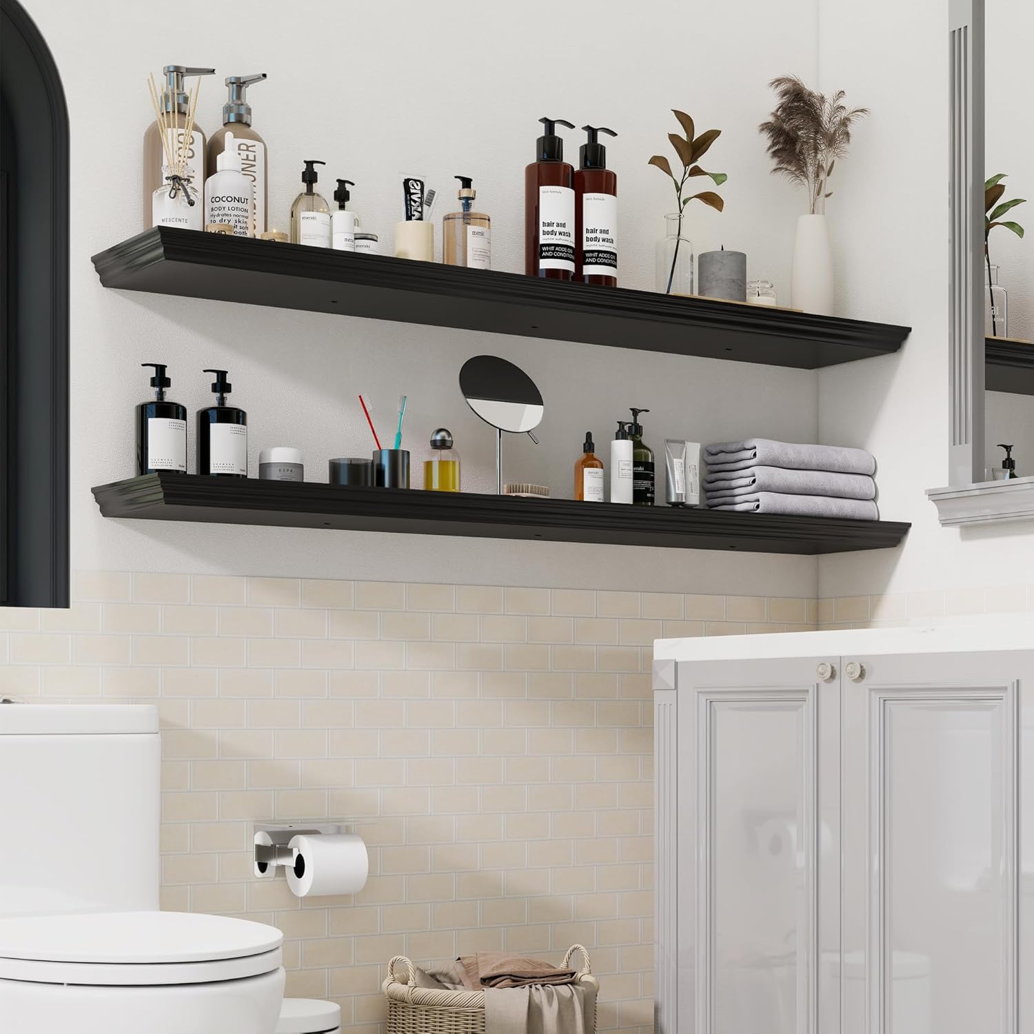 - Multi-Purpose Floating Shelves for Wall: Upgrade any space with these retro, sleek black shelves! Perfect as shelves for the room wall, book shelf for the wall, living Room, office, bedroom, bathroom, or kitchen shelves