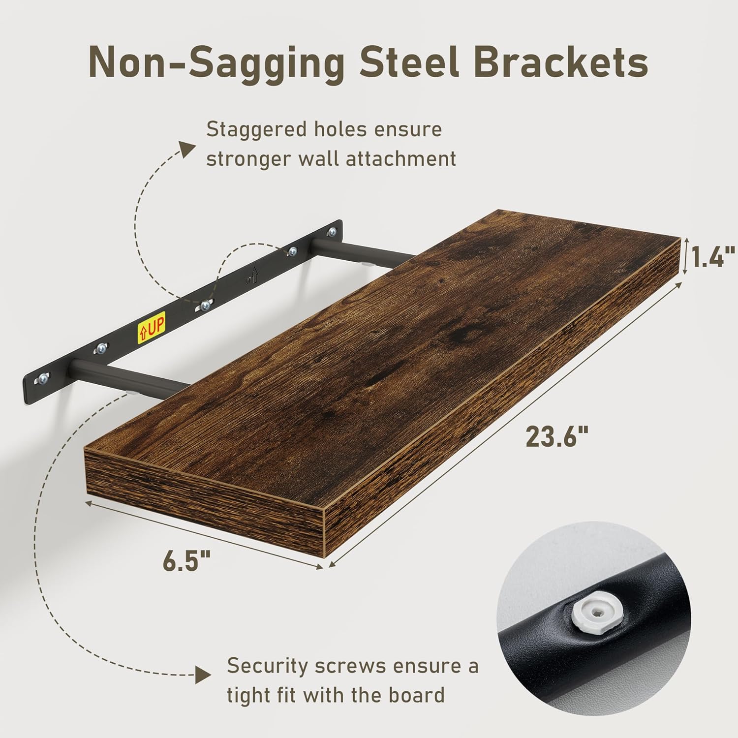 Fun Memories Floating Shelves Wall Shelf 24 inches Long, Farmhouse Bathroom Shelves Bedroom Kitchen Living Room Shelf Wall Mounted, 24 x 6.7 x 1.4 inch Set of 3, Rustic Brown