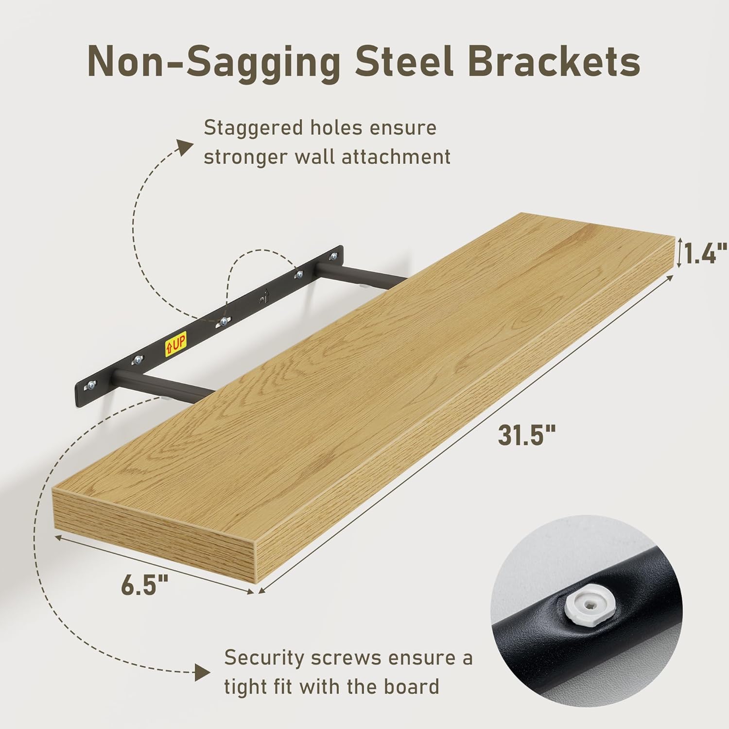 - Easy To Assemble: This floating shelves not only come with stainless-steel galvanized invisible brackets, but also equipped a fixing screw at the bottom to fix the shelf on the support rod, which solves the problem of sliding and is not easy to damage, and can be used for a long time. Instructions, magnetic level, drywall anchors, and screws included. This is great because you can easily mount these rustic shelves Gap-Free to any surface in less than 10 minutes