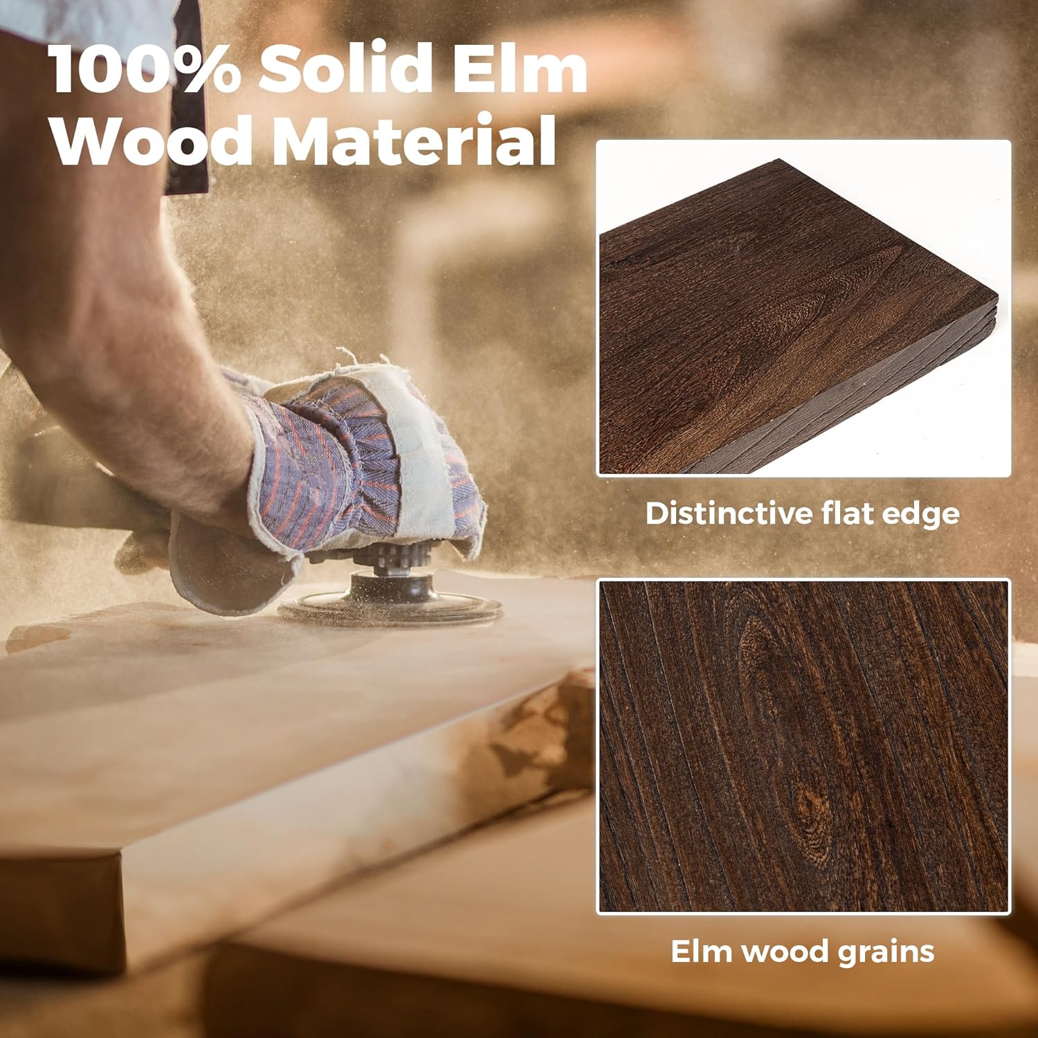 - LAST AND STURDY: Crafted from thick, high-quality solid elm wood, solid elm wood will stand the test of time; shelf is 100% real live edge wood, no veneers; our floating wall shelf is capable of holding up to 100 lbs. The heavy duty hidden metal brackets and wall anchor hardware ensure stability and prevent any sagging issues