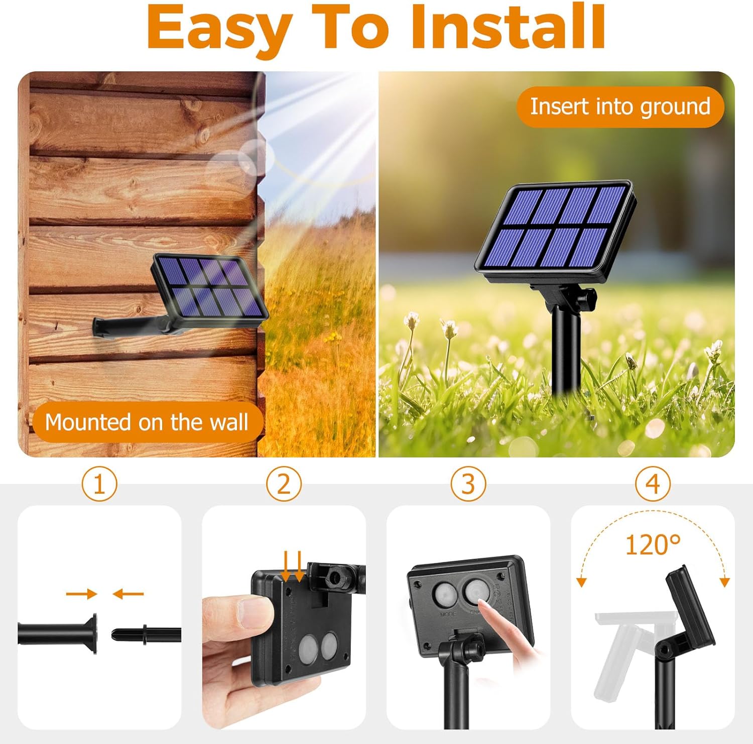 - 2 Packs Solar String Lights for Outside: Each Ultra-Bright twinkle lights solar with 80 LED 33 FT (26.5 ft light string +6.5 ft lead wire), total 160 LED 66 FT. Enough length and lights to increase the decorative range, meet your different embellish needs