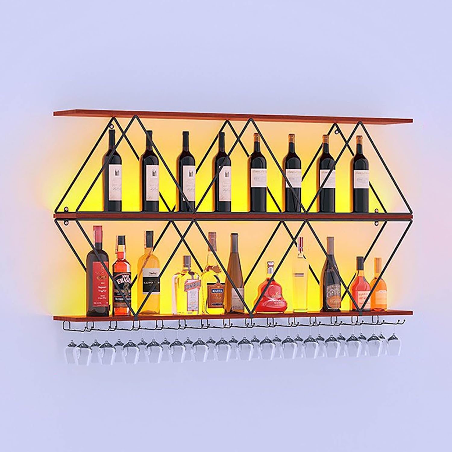 - Multi-function: Well-designed wine glass rack for wine glasses and free placement of wine. This wall-mounted wine rack can not only store wine bottles, but also other items to make your space more sophisticated.