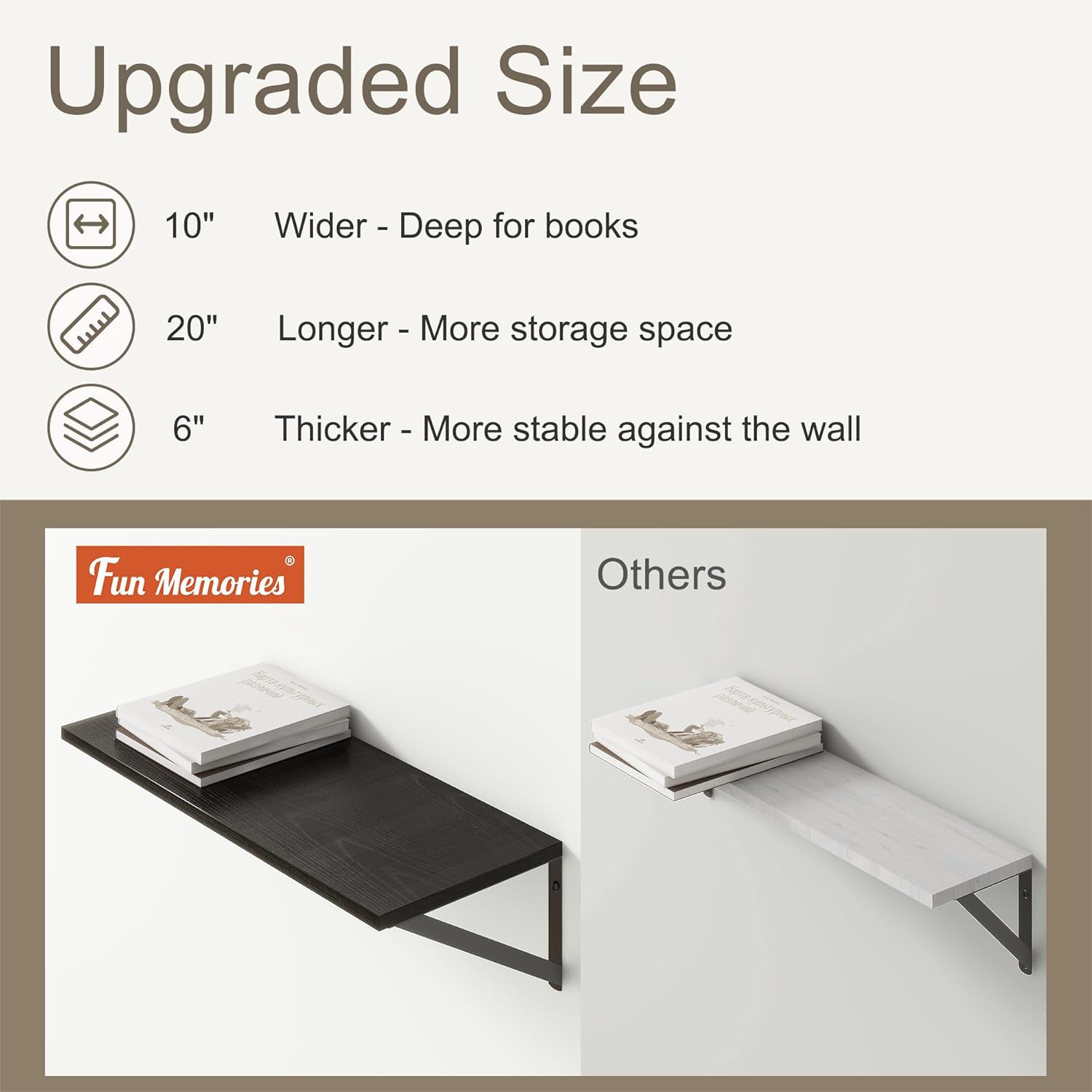Fun Memories 20 Inch Floating Shelves for Wall, Black Bathroom Shelves Set of 2, 10 Inch Deep Wall Shelf for Bedroom, Kitchen, Large Home Decor Shelves Farmhouse Storage Shelf