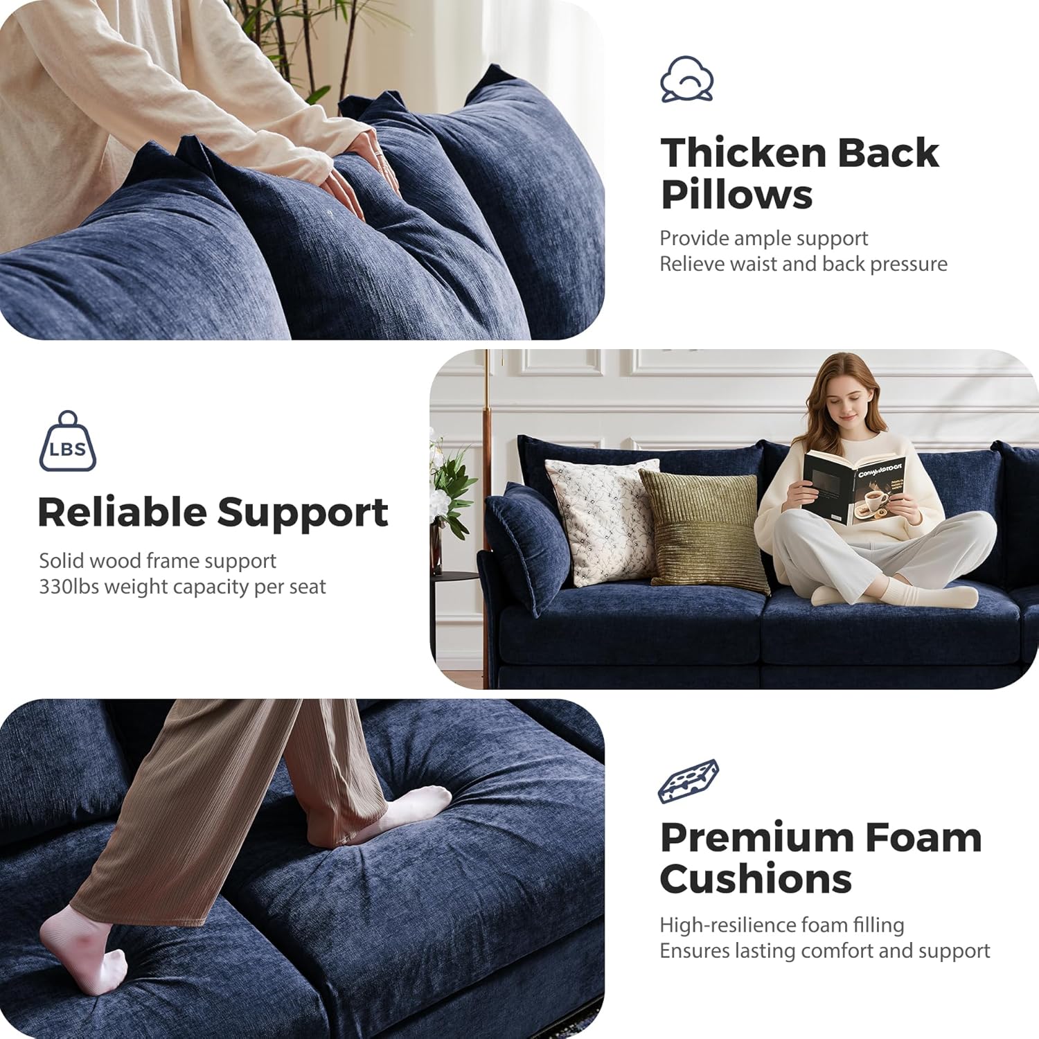 - 💡 Premium Chenille Fabric - The modern sofa is upholstered in premium chenille fabric that feels luxurious to the touch, offering both comfort and durability. The material is not only soft and inviting but also non-pilling and won't stain, ensuring long-lasting quality.
