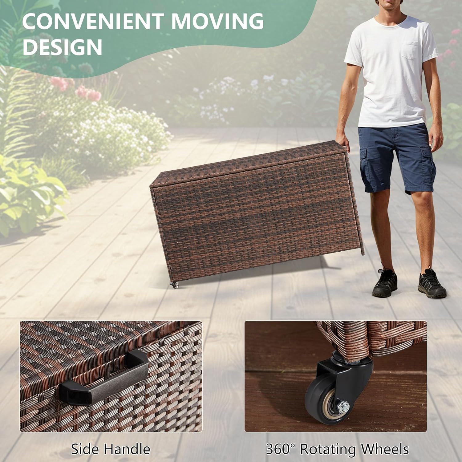 - Versatile Use: Our outdoor wicker deck box with wheels is ideal for use on the patio, by the pool, or in the backyard, providing a great storage solution for various outdoor spaces. If you have any question, please be free to contact us