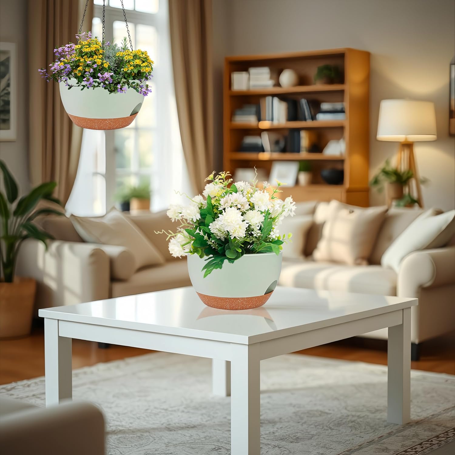 - ✅ 2 Large Self-Watering Planters: Double the value! Includes two 12-inch wide plastic hanging planters with built-in self-watering reservoirs to reduce the need for frequent watering and keep plants healthier.