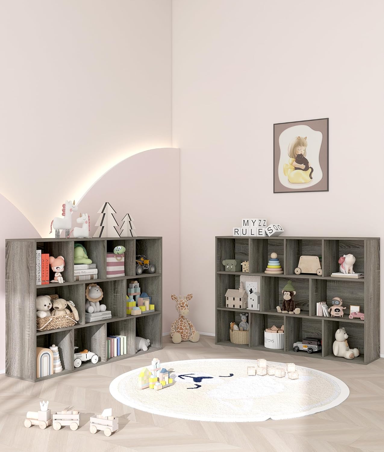- 11 Children Bookshelf: With 11 compartments, this bookshelf for nursery functions as both a wood bookshelf and a book shelfs. It easily stores books, blocks, or soft toys, making it a smart bookshelf kids for any kids bookshelf and toy storage or book shelf for nursery setup