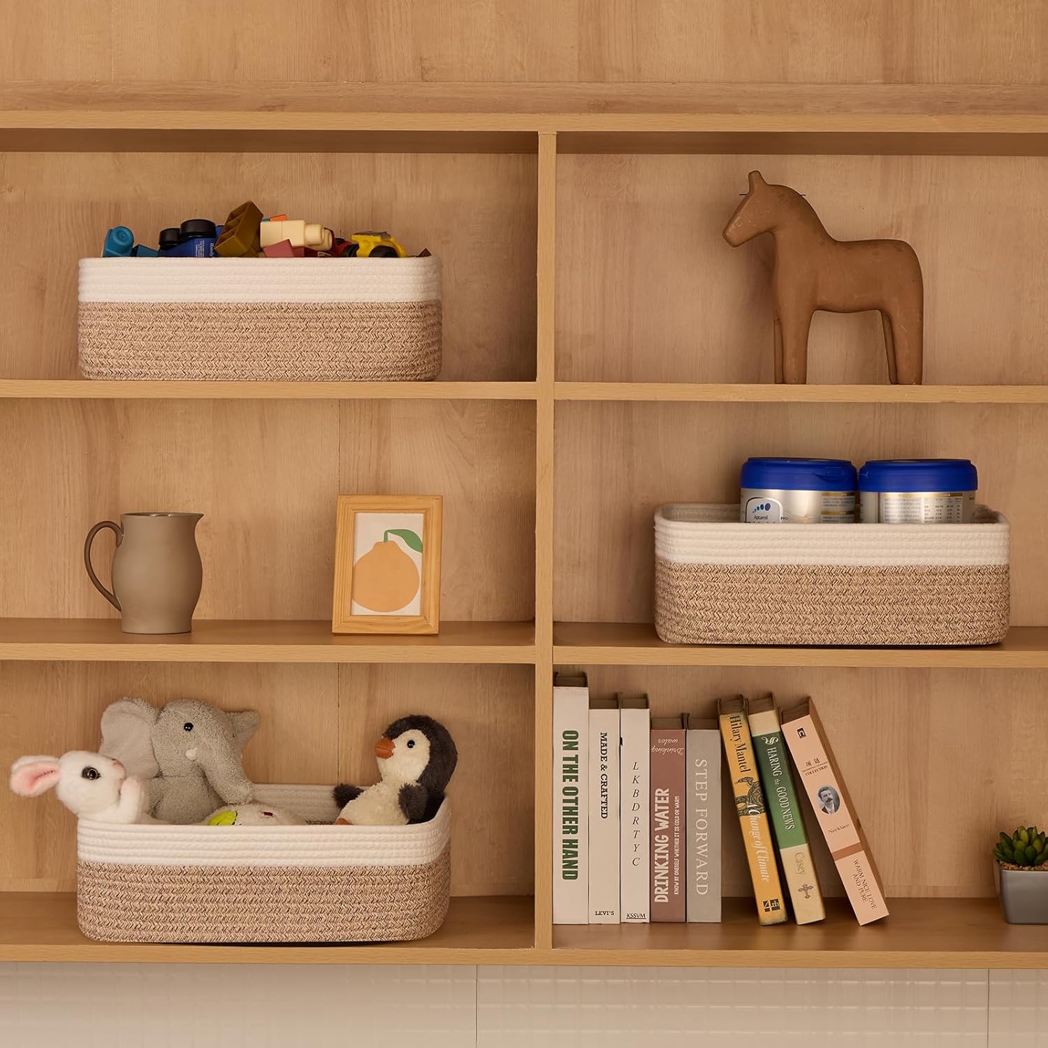 - [ Stylish & Versatile ]: Great for organizing small items on desks, in closets, wardrobes, or dressers—these cute baskets add texture to any living room, bedroom, or bathroom, appealing to fans of modern minimalist design