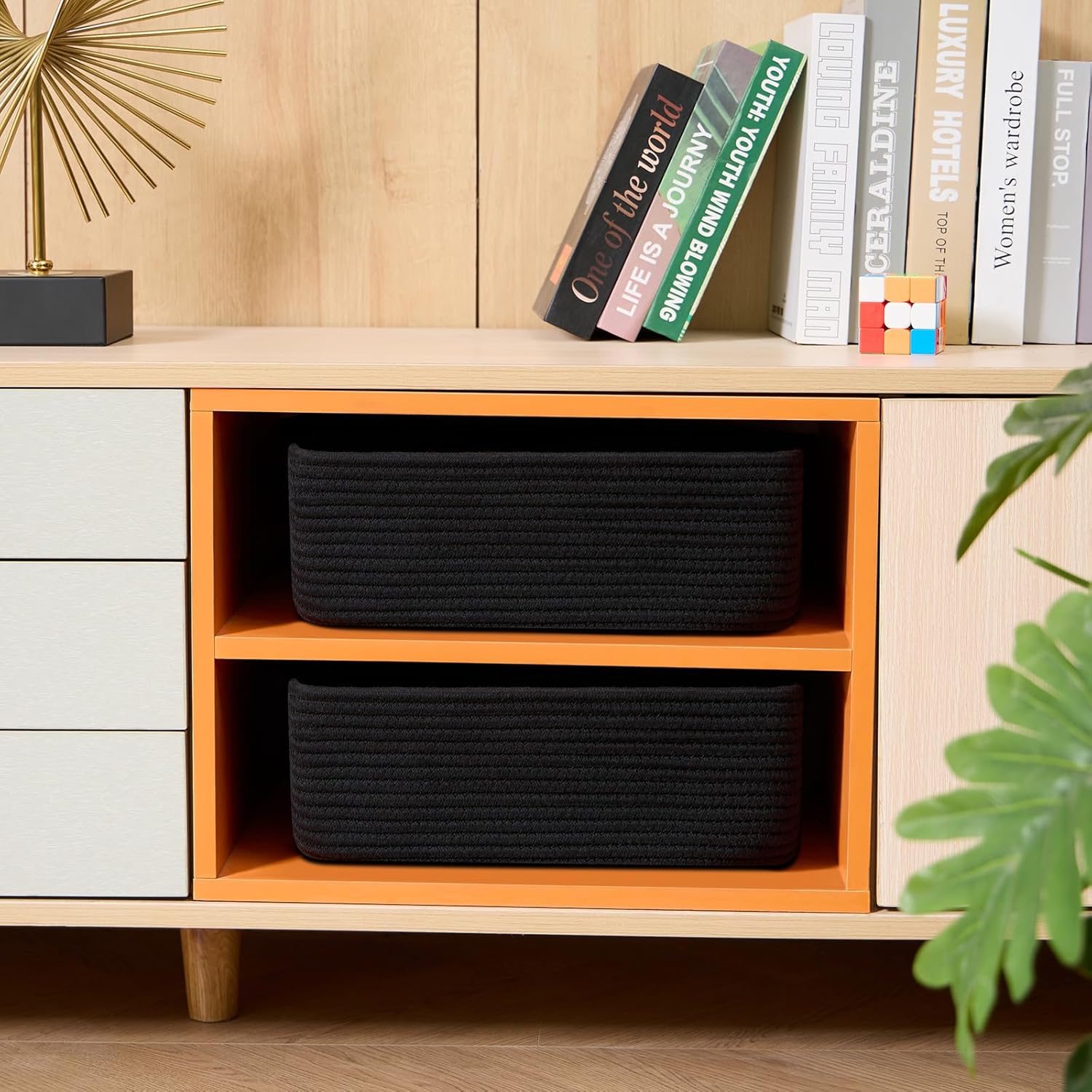 - [ Stylish & Versatile ]: Great for organizing small items on desks, in closets, wardrobes, or dressers—these cute baskets add texture to any living room, bedroom, or bathroom, appealing to fans of modern minimalist design