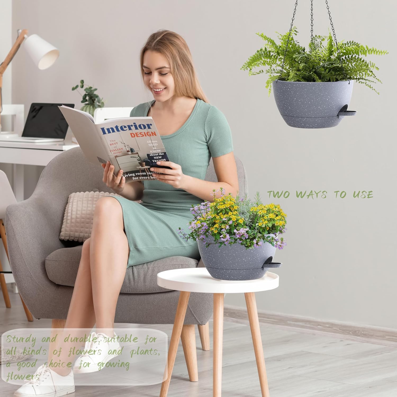 12 Inch Hanging Baskets 2 PC with Chains, Self-Watering Hanging Planters for Indoor Outdoor Plants, Plastic Hanging Flower Pots,Speckled Grey