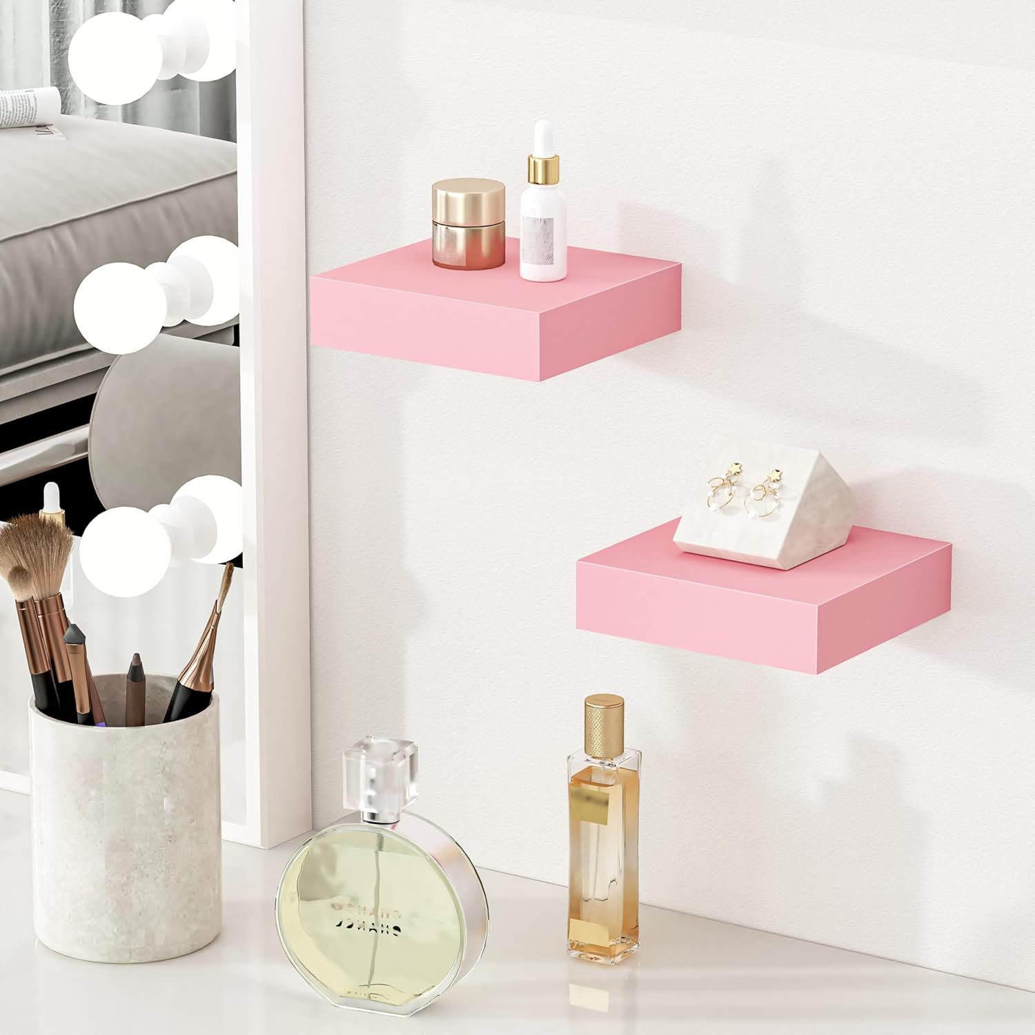 BAMEOS Pink Floating Shelves for Wall, 6" x 6" Wall Shelves for Room, Floating Book Shelves, Hanging Shelves for Bedroom, Bedroom, Living Room, Kitchen (Set of 2)