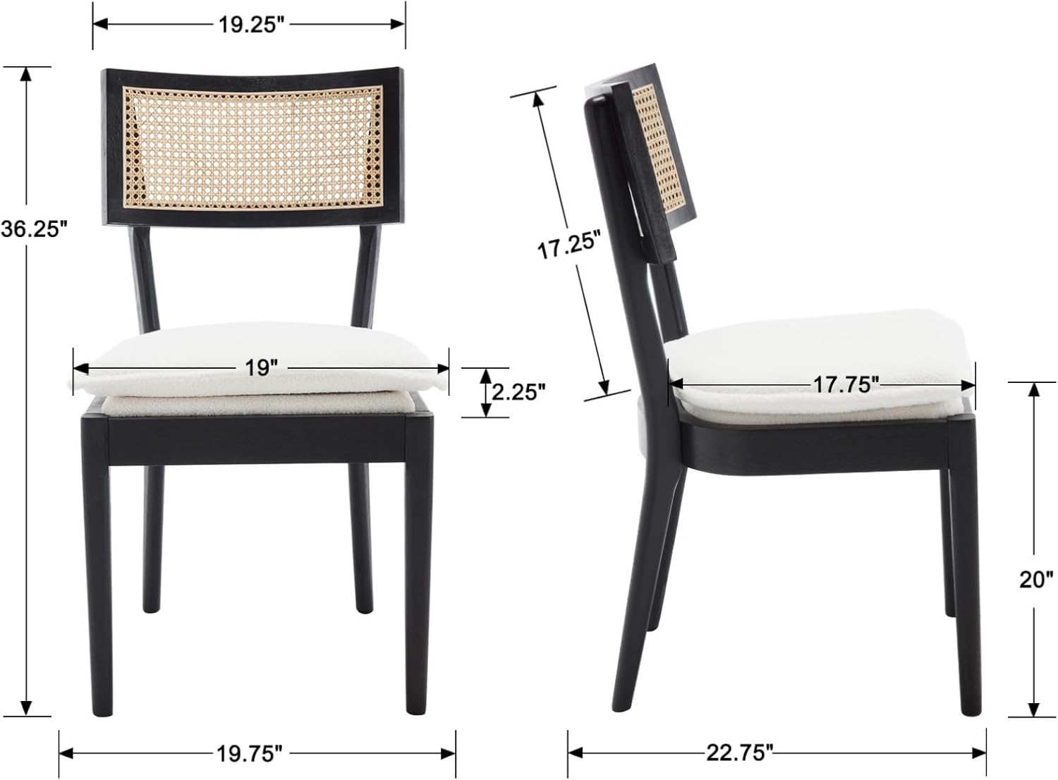 Rattan Dining Chairs Set Of 2 , Mid Century Modern Black Wooden Cane Back Chairs with Removable Sherpa Cushion , Retro Farmhouse Upholstered Kitchen & Dining Room Chairs for Restaurant Living Room