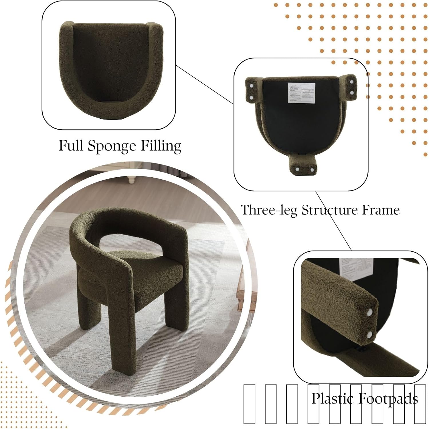 - No Assembly Needed: This chair features a fully fabric covered solid wood leg design with a stable three-leg structure that supports up to 300 pounds without requiring assembly. Equipped with six non-slip foot pads, it protects your floors from scratches while ensuring steady, wobble-free performance in any setting