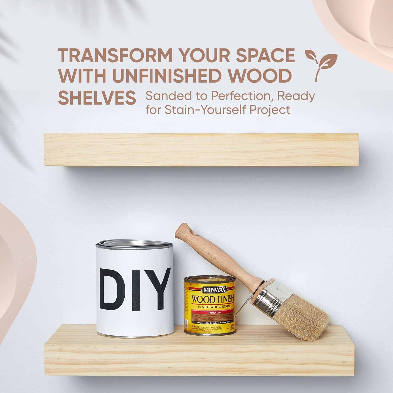 Homeforia Wood Floating Shelf 16 inch, High End Solid Natural Wood 16inch Floating Shelves for Wall Mounted, Unfinished Wooden Small Floating Shelves, Heavy Duty Bracket, 16 X 6.5 X 1.75 in, Set of 4