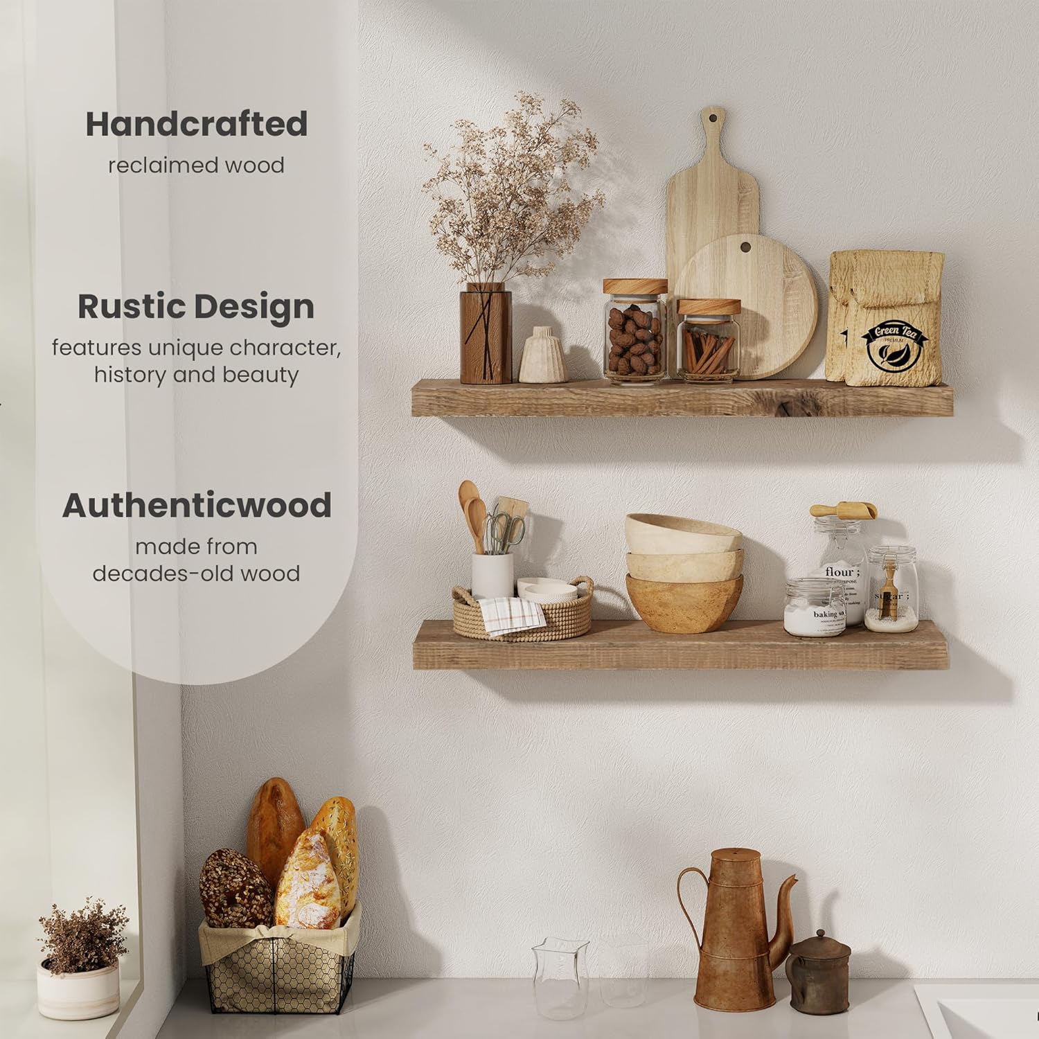 - Multifunctional & Versatile - Designed for both decoration and organization, our wood floating shelves enhance any room in your home while providing additional storage space in the livingroom, kitchen, garage or any space that needs a touch of rustic charm