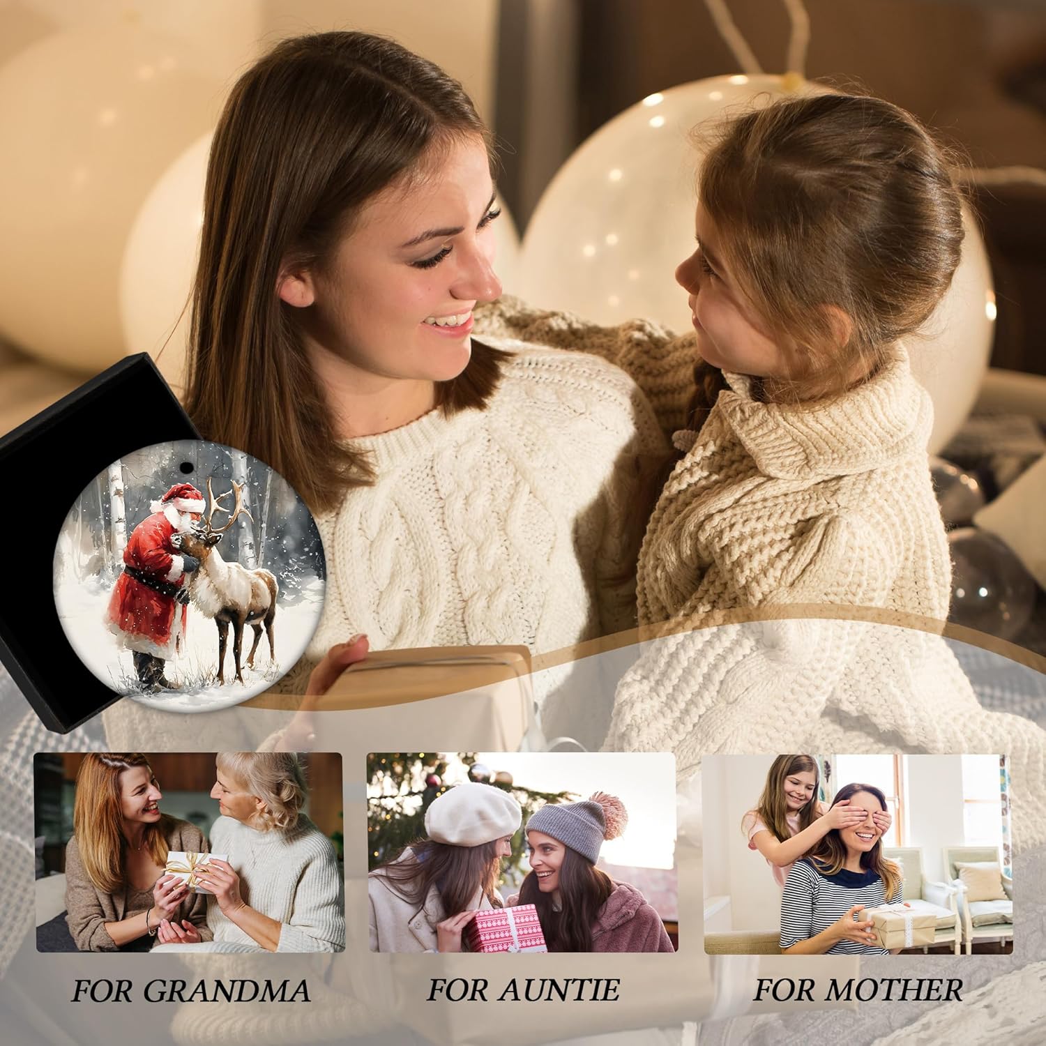 Christmas Santa Reindeer Ceramic Ornament Gifts, Rustic Winter Santa Claus Reindeer Decorative Hanging Ornaments for Xmas Tree Holiday Party Decoration, Winter Xmas Tree Decorations