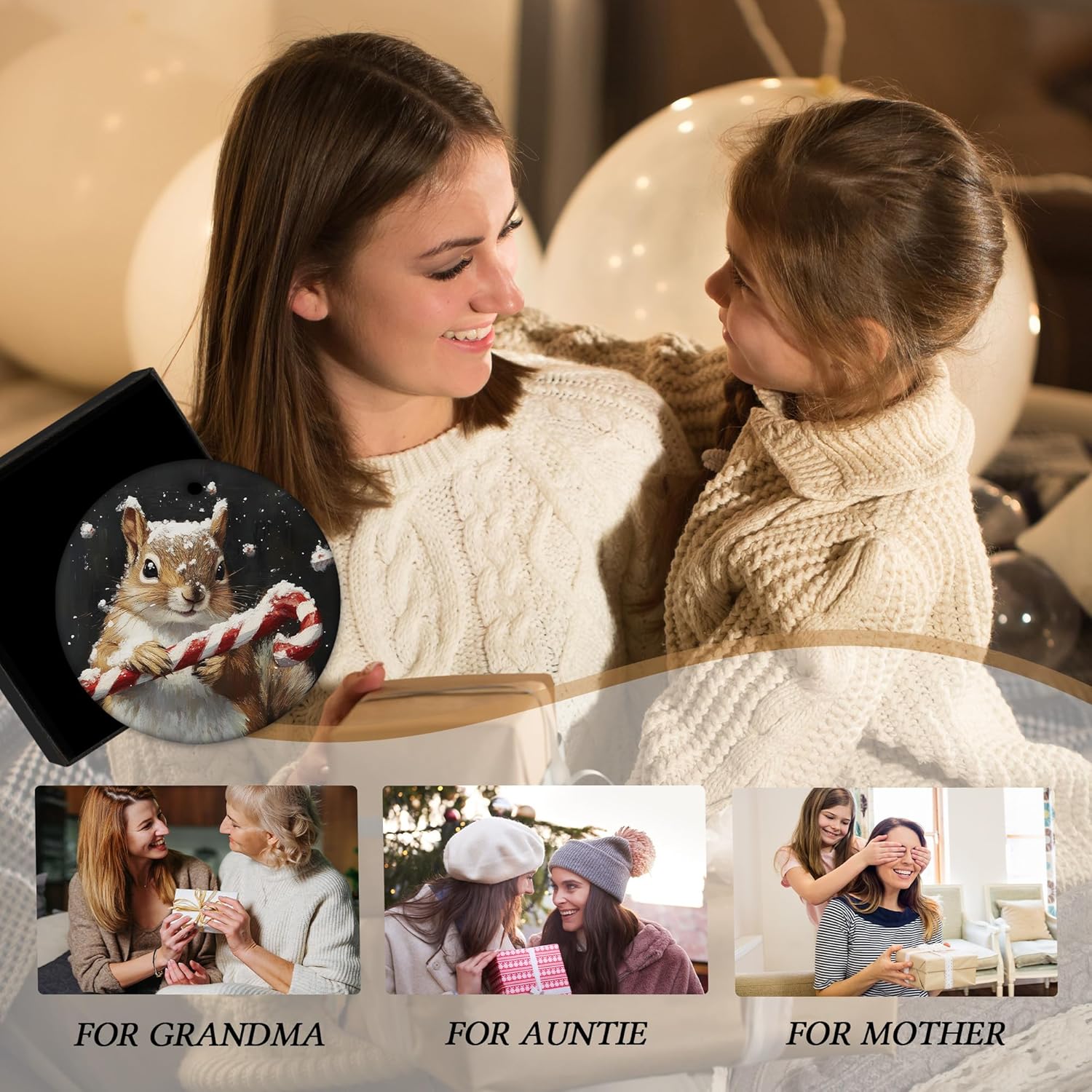 Christmas Squirrel Ceramic Ornament Gifts, Retro Rustic Winter Christmas Squirrel Decorative Hanging Ornaments for Xmas Tree Holiday Party Decoration, Animal Xmas Tree Decorations