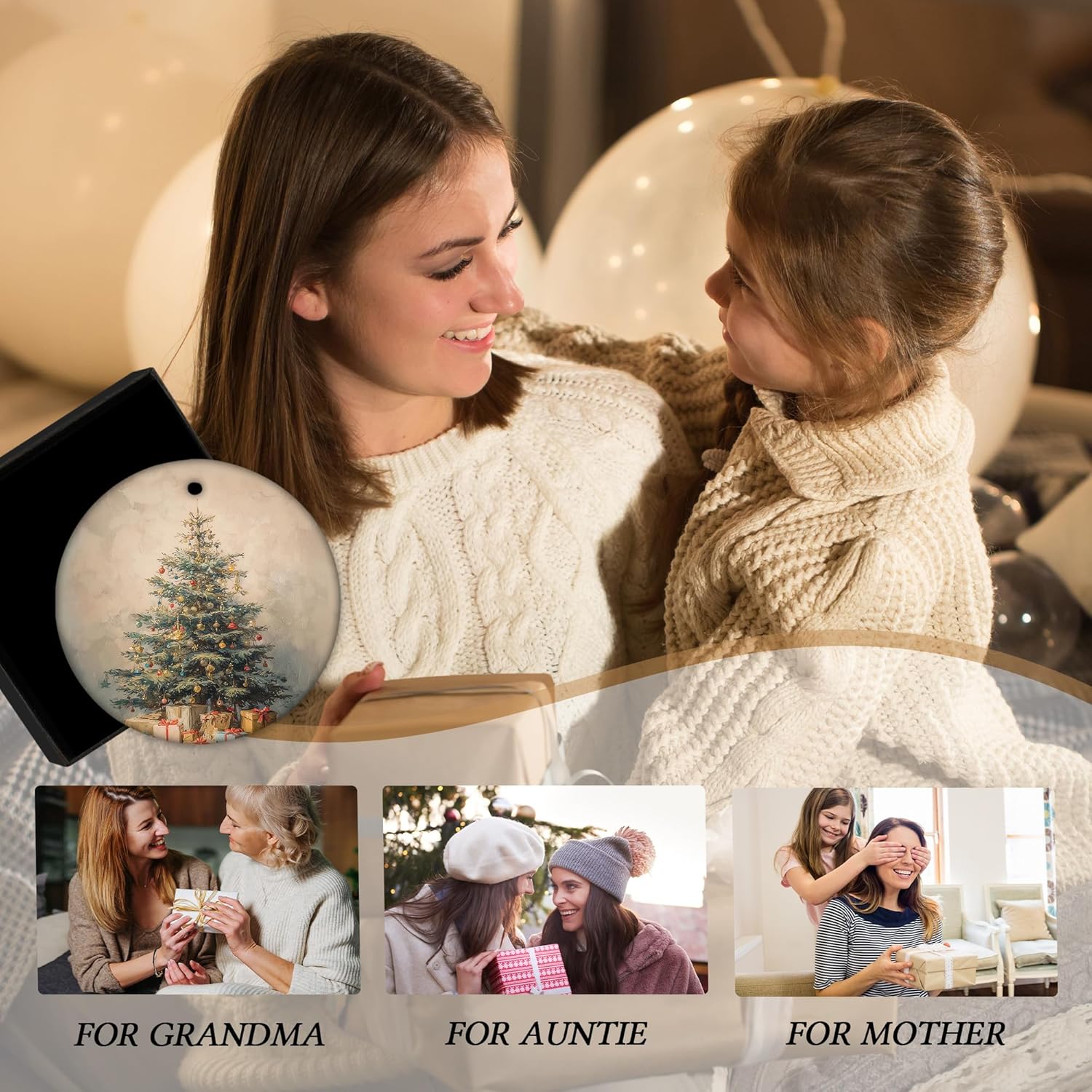 Vintage Farmhouse Christmas Ceramic Ornament Gifts, Rustic Cottagecore Winter Christmas Decorative Hanging Ornaments for Xmas Tree Holiday Party Decoration, Winter Xmas Tree Decorations