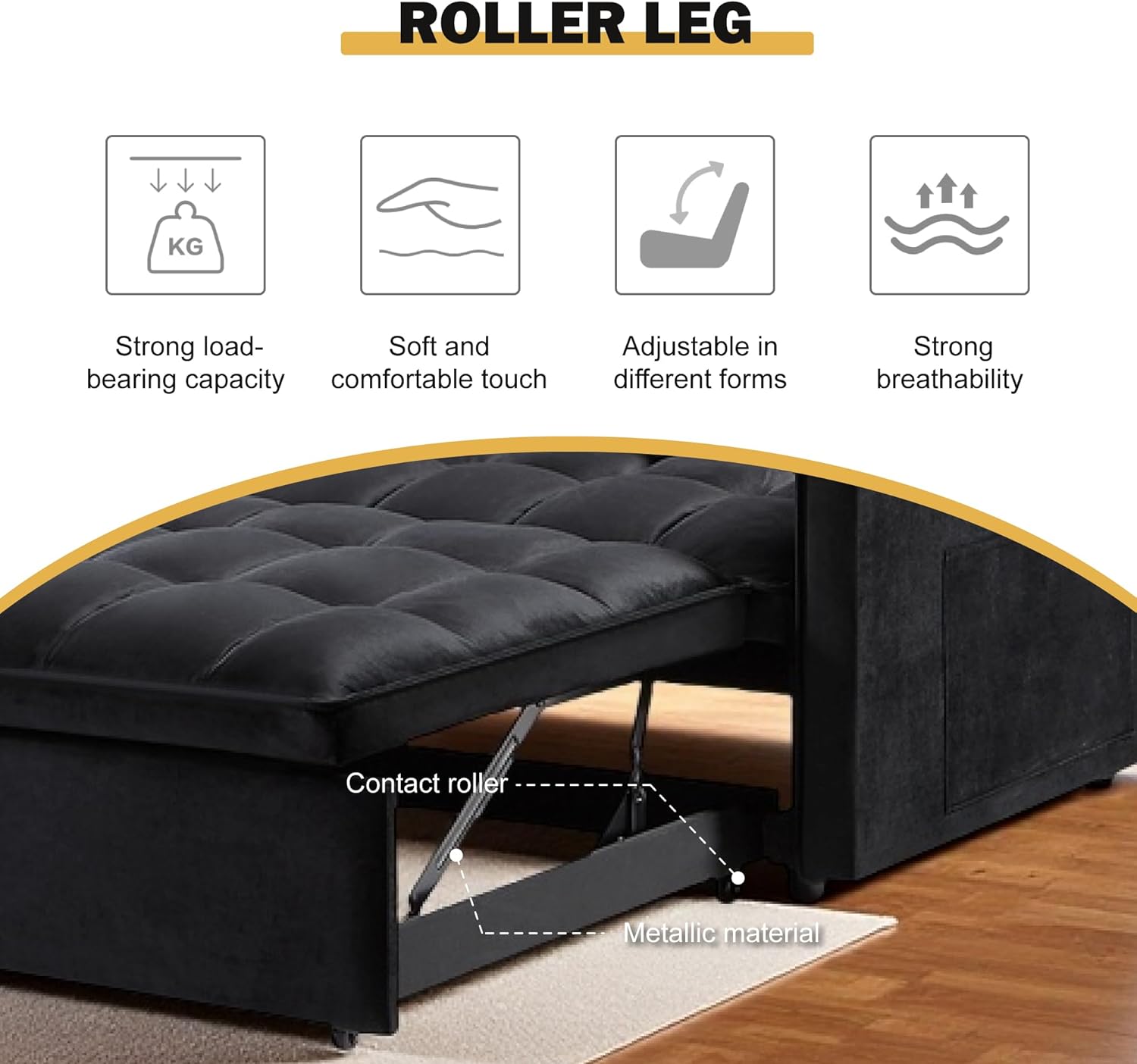 - Luxurious Comfort: Upholstered in soft velvet fabric, this sleeper sofa couch with pullout bed offers a plush seating experience. The arms, seat cushions, and back cushions are elegantly wrapped with piping edges, ensuring both style and comfort for your living room or guest room