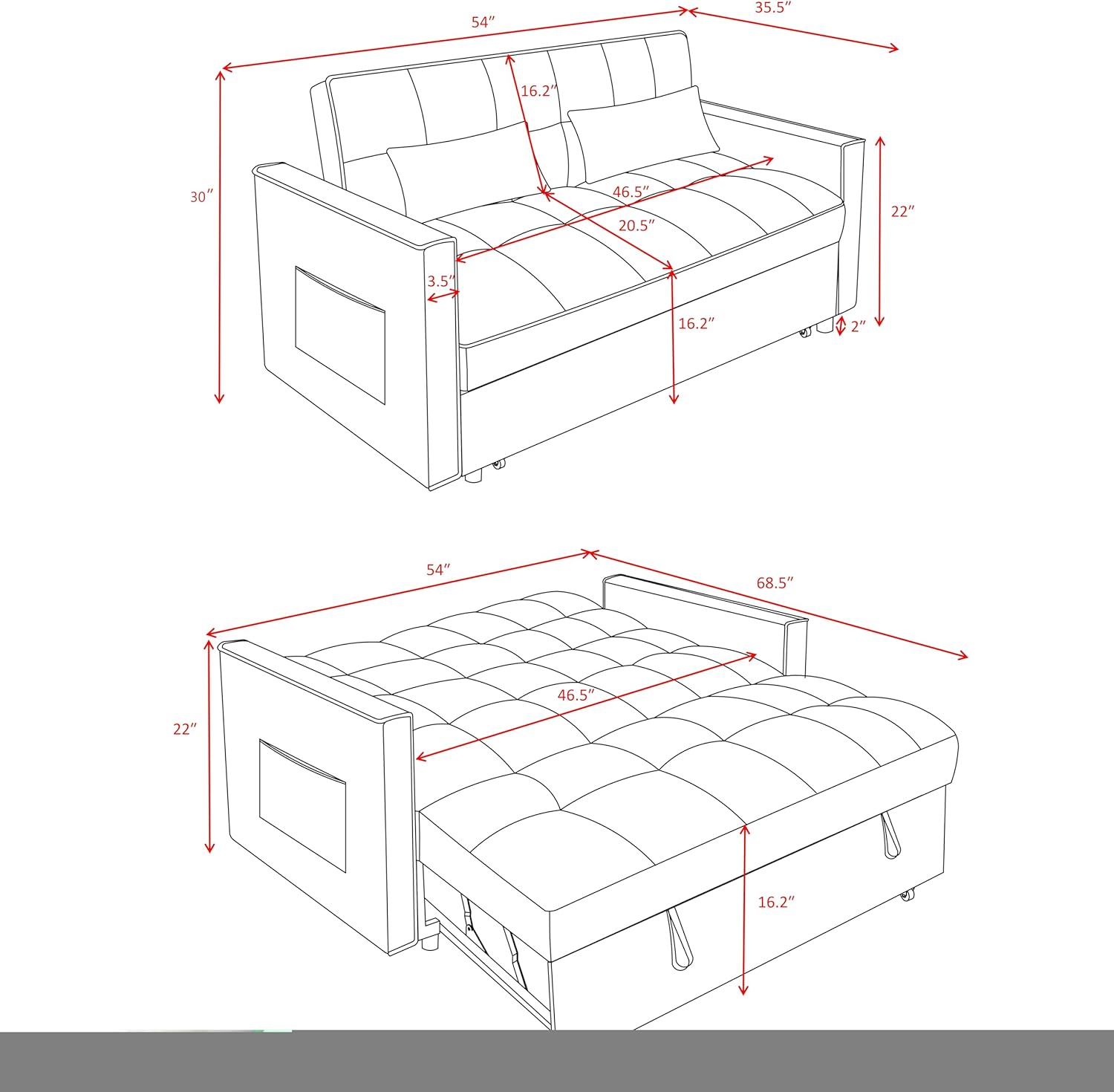 - Versatile Design: This 54” pull-out sleeper sofa easily transforms into a twin-size bed, making it an ideal choice for accommodating overnight guests. Its convertible sleeper sofa design ensures that you can quickly convert it from a stylish couch to a comfortable bed in just seconds