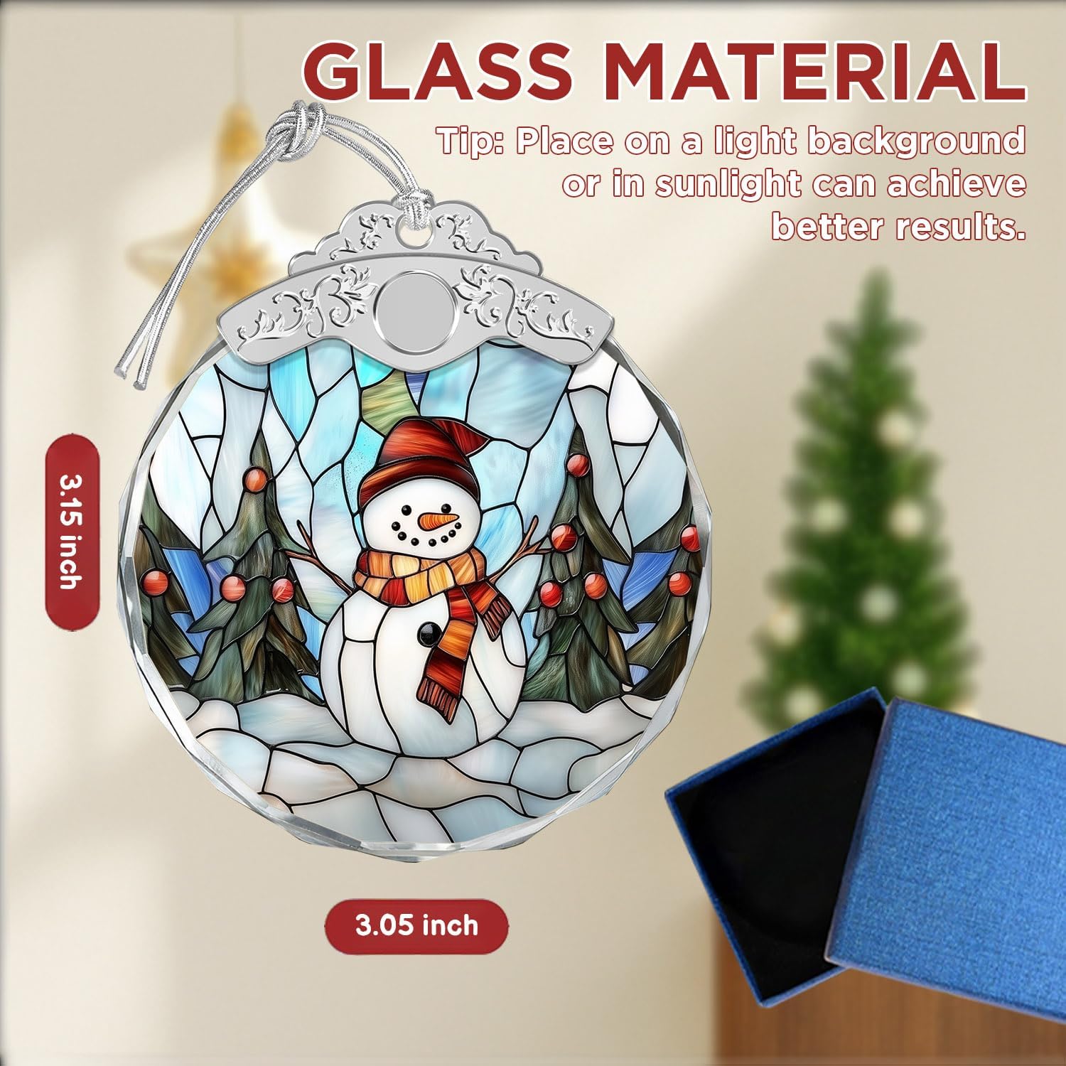 - ✨ Product Overview: Handcrafted from premium glass and printed using UV technology, this ornament ensures vivid colors and durability. The stained glass look adds elegance, while the 3.54"" size makes it a standout addition without overwhelming your tree. No peeling, no fading – just lasting holiday magic.