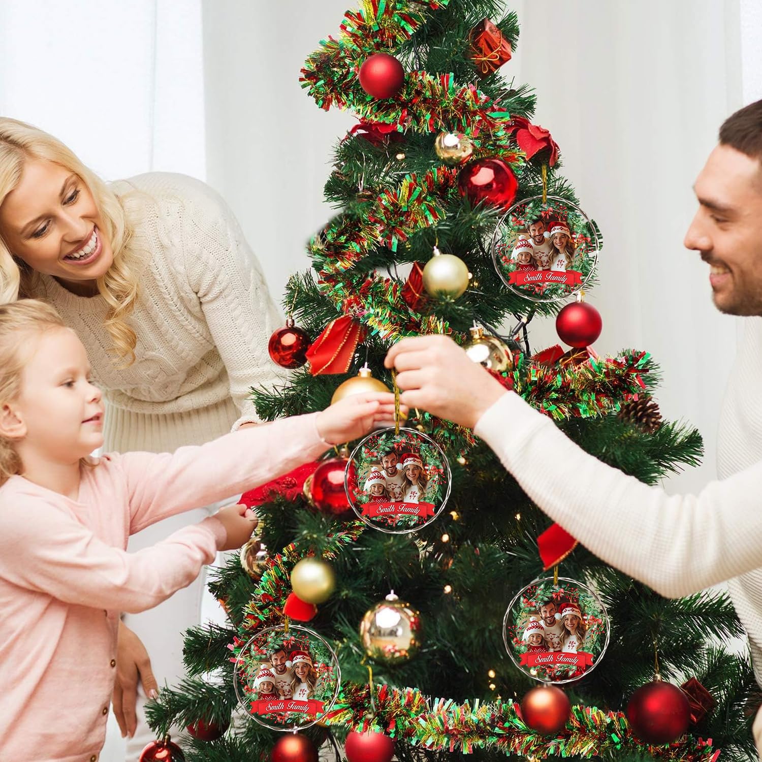 Christmas Tree Hanging Decor, Personalized Crystal Photo Ornaments, Custom Ornaments for Family/Child, Decorative Hanging Pendant, Design Your Own Picture, Gifts for Christmas, for Mom/Dad