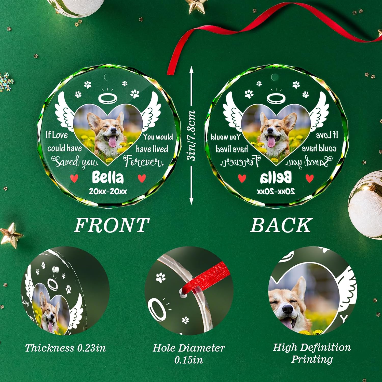 Personalized Memorial Pet Glass Ornament - Custom Picture Christmas Ornaments, Dog Forever in Our Hearts Hanging Ornament Xmas Tree Decor for Dog Lovers