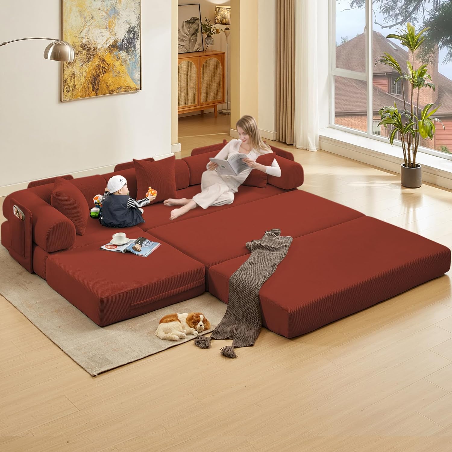 - Oversized Sectional Sofa: This DIY combination sofa offers free arrangement modes—such as L shaped couch, sofa & coffee table set, chaise lounge, entertainment corner, oversized sleeper sofa bed—making it the perfect choice for families, allowing for flexible layouts in living rooms, apartments, or playrooms where parents and children can relax, play, or host guests together