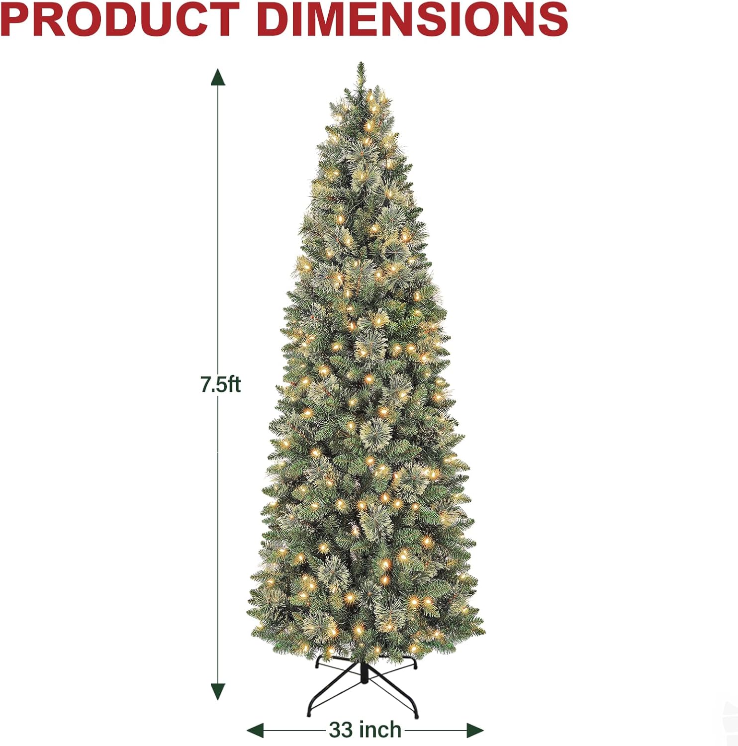 - Easy Setup & Storage: Designed for convenience, this 7.5ft prelit pencil tree features a hinged branch system that simplifies assembly: branches snap effortlessly into place around the central pole in minutes. When the season ends, simply fold the branches back onto the pole for compact, space-saving storage.