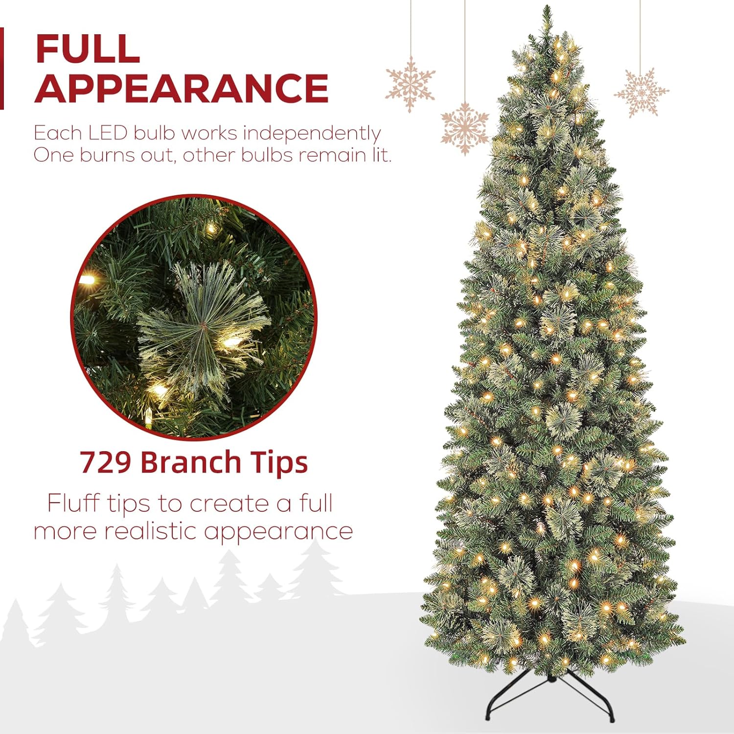 - Pre-Lit Christmas Tree: Instantly infuse your space with a magical festive ambiance with this pencil Christmas tree, pre-strung with 300 Warm White LED lights that activate at the touch of a button. Each UL-certified bulb is designed for reliability, even if one burns out, the rest remain illuminated, ensuring uninterrupted holiday cheer.