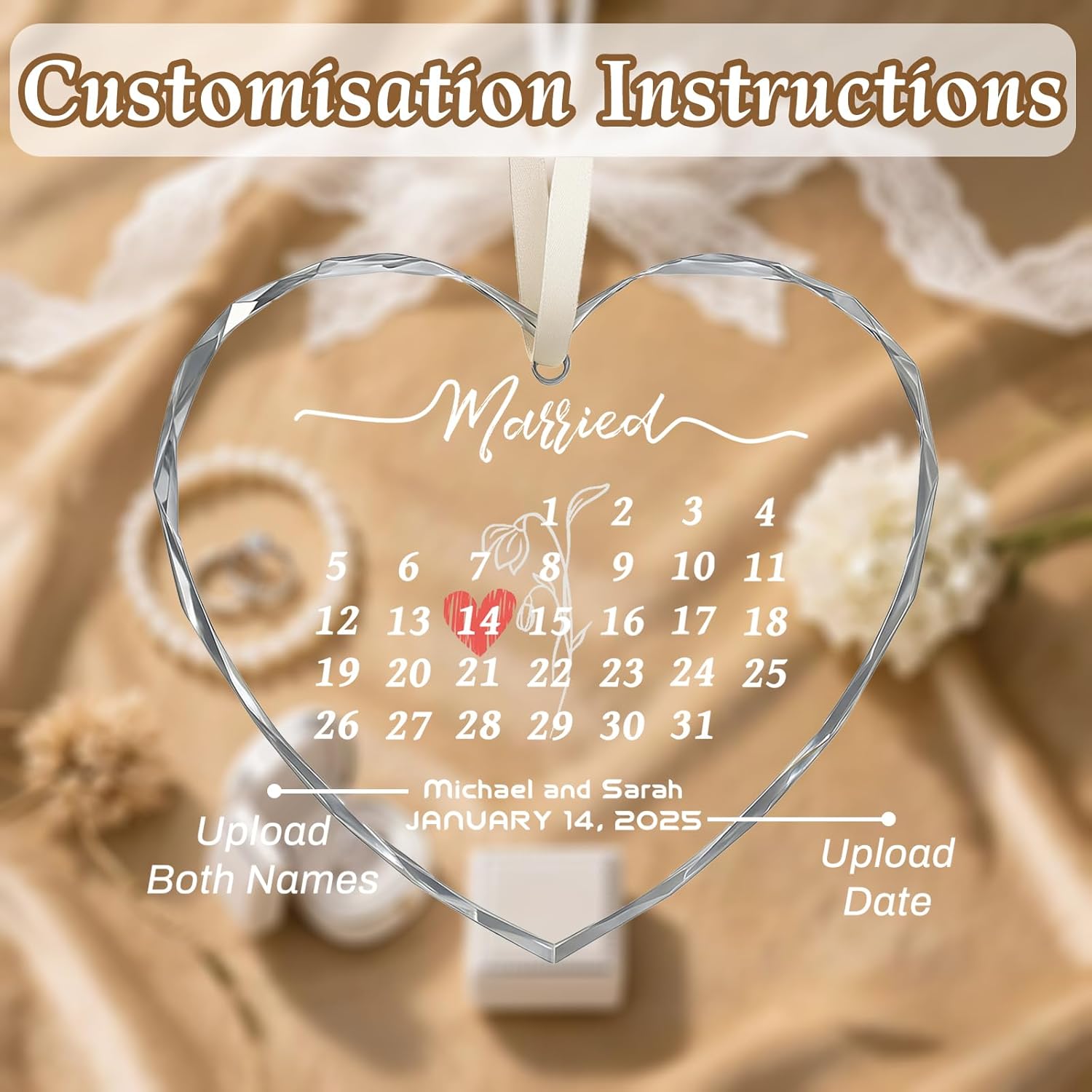 • Custom Wedding Ornament: The personalized wedding ornament feature classic heart and round designs. Choose your preferred pattern style, upload your photo, name, or date to customize a crystal ornament crafted to celebrate newlyweds and eternal love. Each custom glass ornament boasts a brilliant, lustrous surface with a premium feel. It serves as the perfect vessel to convey your heartfelt blessings