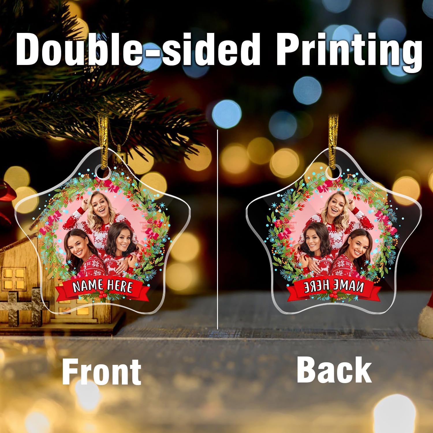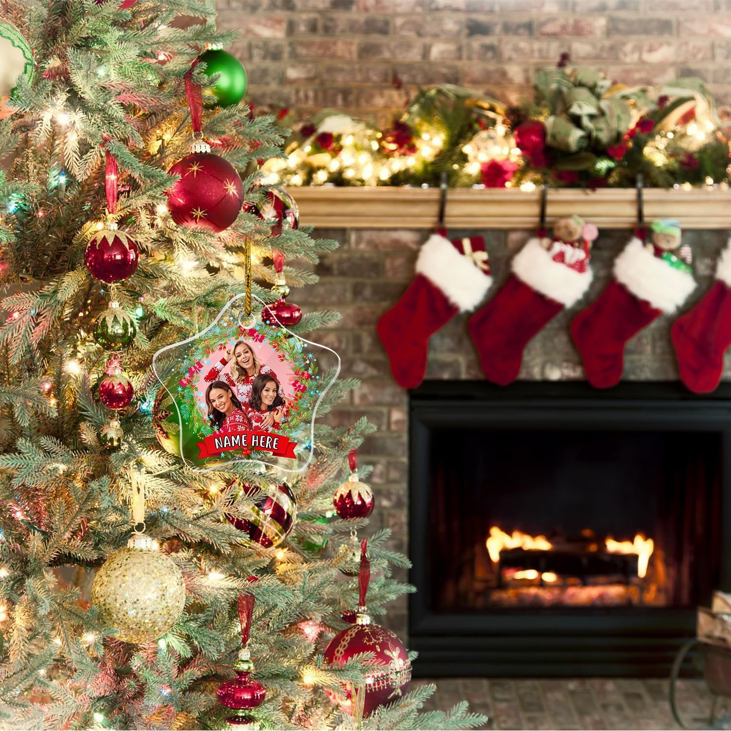 Personalized Christmas Ornaments, Crystal Custom Hanging Ornaments, Decorative Photo Hanging Glass Pendant, Design Own Picture, Gifts for Christmas, Star Decor for Family/Friends