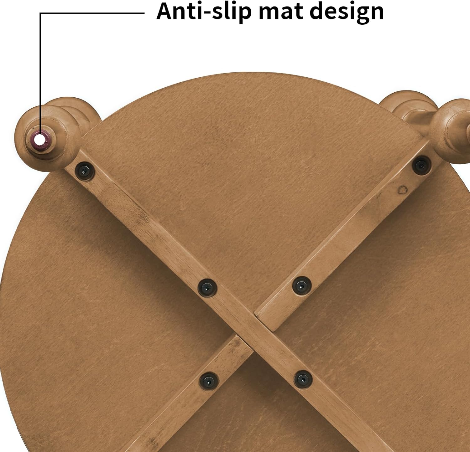 - Durability Build for Daily Use: The round side table use all-solid wood legs and reinforced crossbars ensure exceptional stability and weight-bearing capacity. The smooth real wood veneer tabletop and shelf maintain a natural wood grain finish for easy cleaning and long-lasting beauty